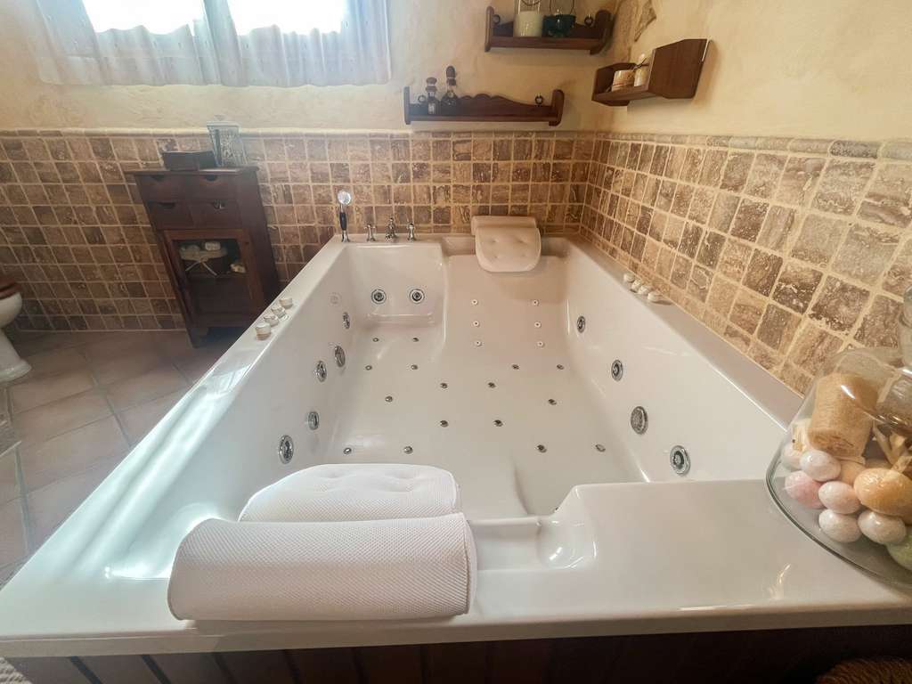 La vivienda principal conserva la autenticidad del estilo mediterráneo gracias a sus paredes de piedra tosca, techos con vigas de madera vista y suelos de barro cocido artesanal, logrando una atmósfera cálida, elegante y con carácter. Cada detalle ha sido cuidadosamente restaurado para mantener su esencia histórica sin renunciar a las comodidades modernas.