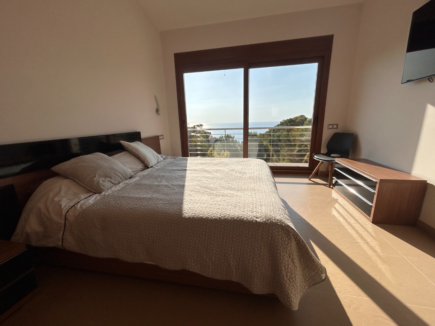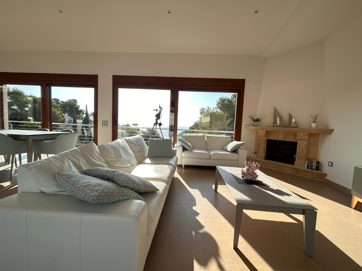Esta preciosa villa en Balcón del Mar, Jávea ofrece impresionantes vistas al mar desde todas las estancias. Tanto desde el salón, la cocina como desde los dormitorios, el Mediterráneo está siempre a la vista.