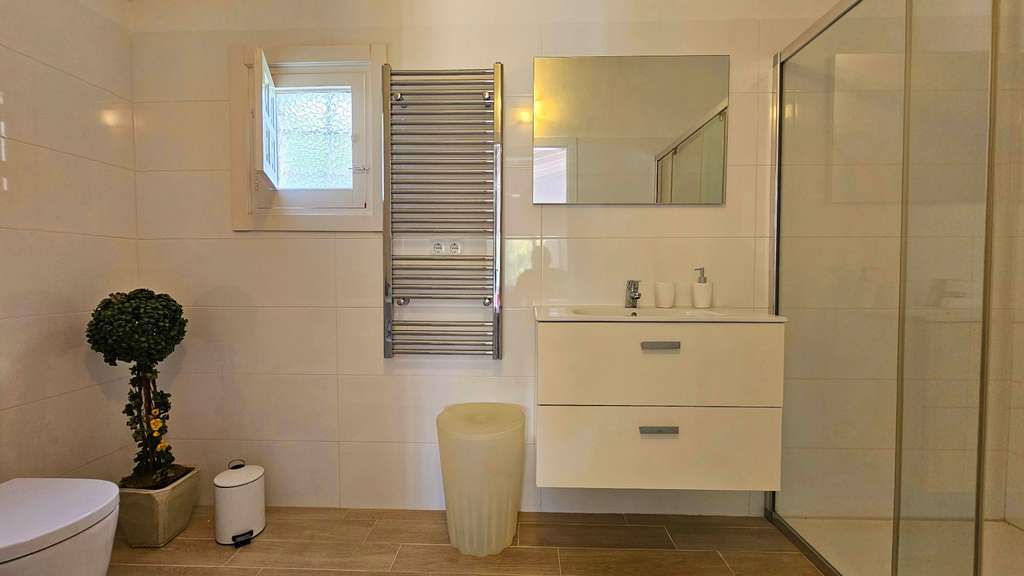 La villa dispone de 4 dormitorios dobles con armarios empotrados y dos baños. También hay un anexo a la casa principal, perfecto para invitados, con un amplio dormitorio y baño completo.