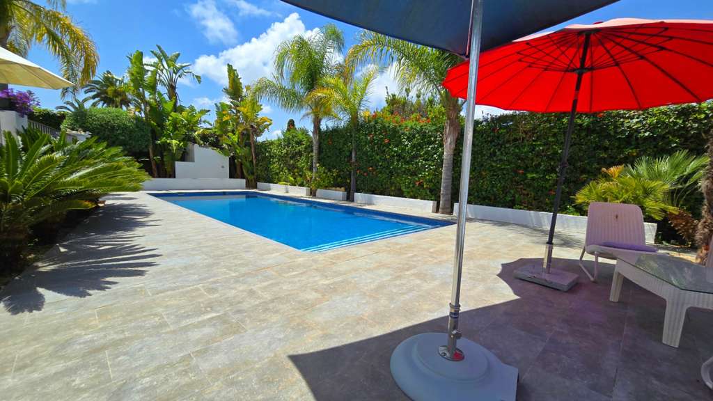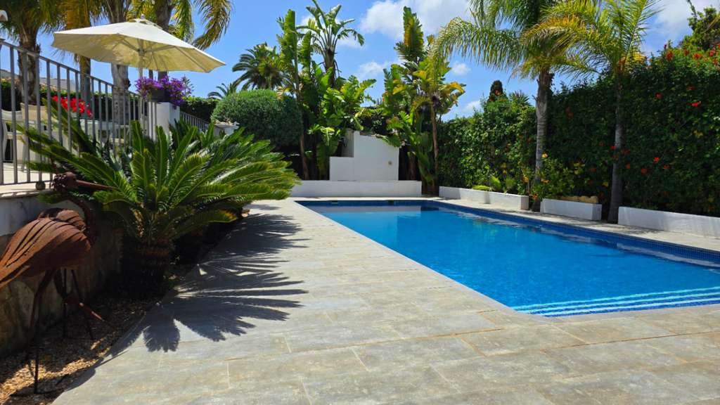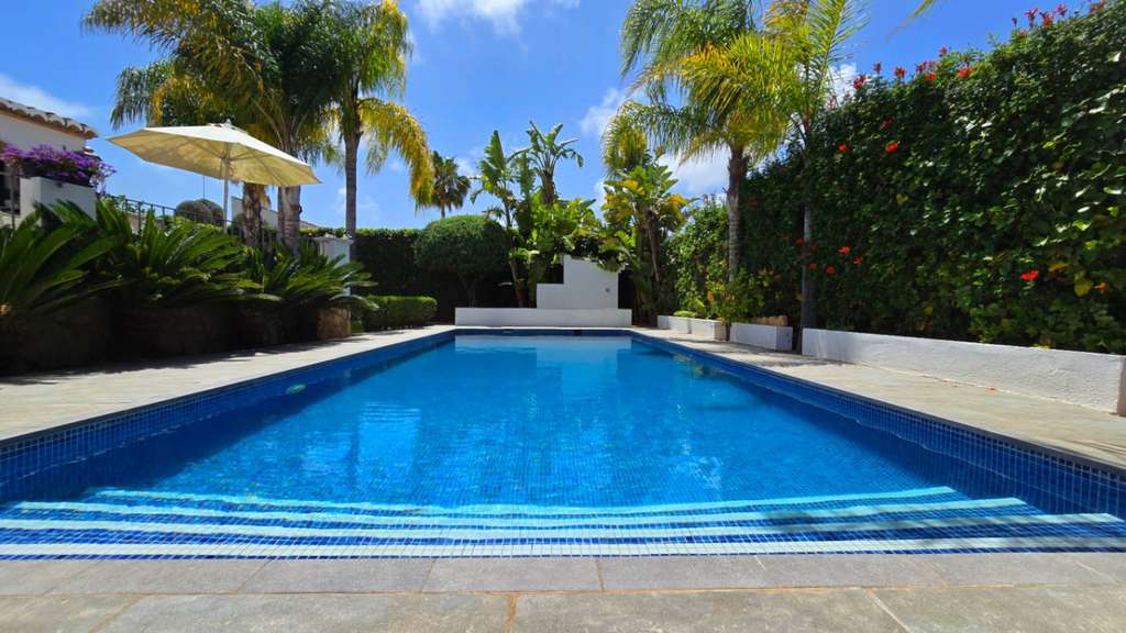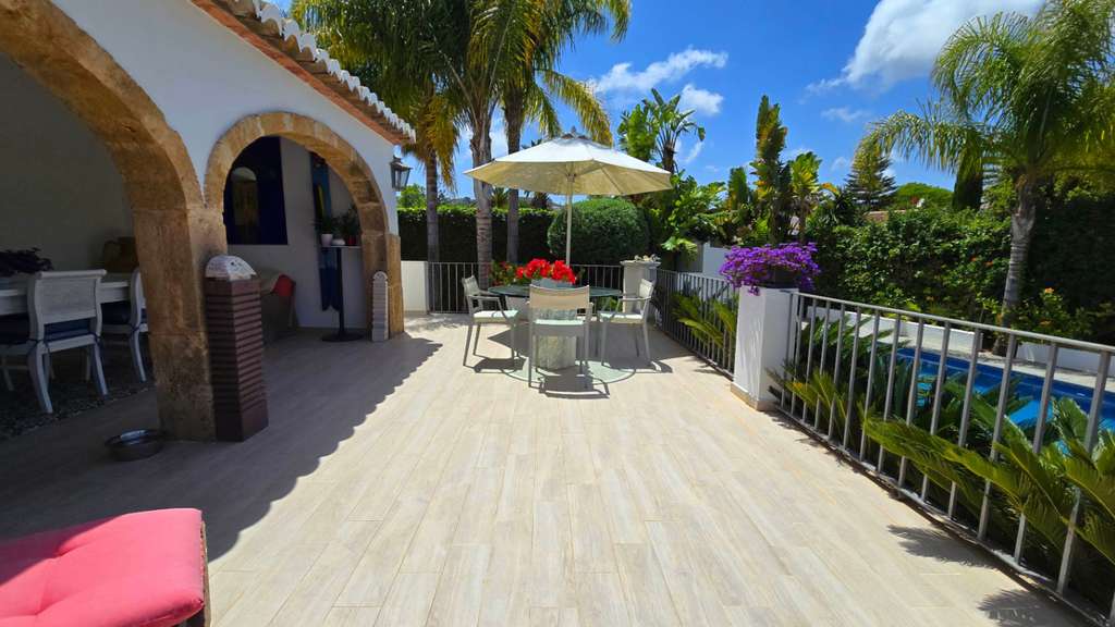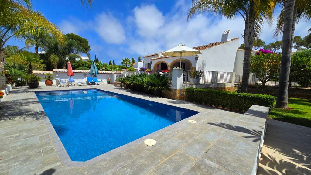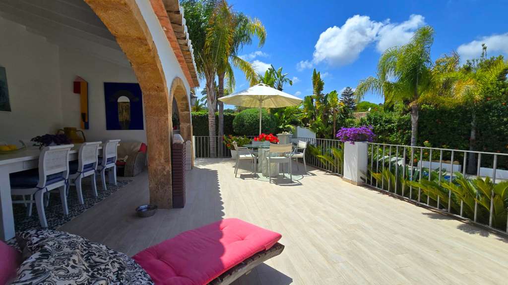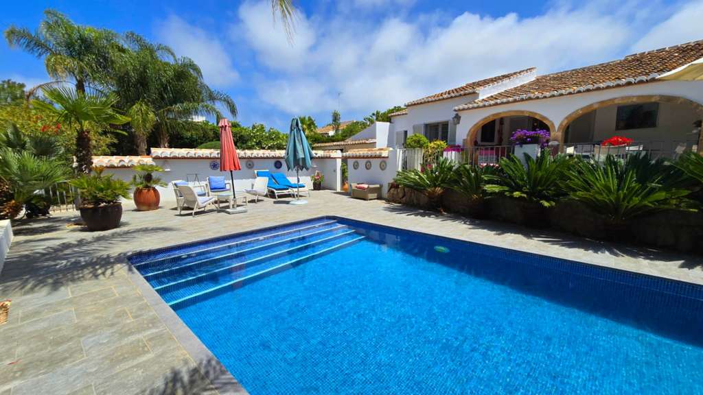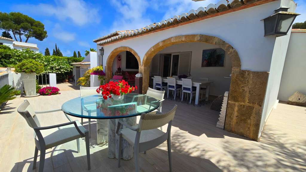 Villa mediterránea de una sola planta bellamente renovada con 5 dormitorios, a solo 6 minutos de la playa en Jávea