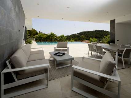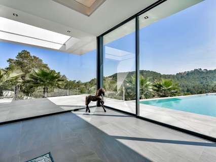 A estrenar, Villa moderna de obra nueva con vistas al panoramicas al mar en venta urbanización Cansalades Tosalet 5 en Javea en la costa Blanca de Alicante en España, distribuida en 3 plantas con 350 m² construidos utiles en una parcela de 1000 m², consta de cocina de diseño abierto totalmente equipada, comedor y sala de estar, 3 dormitorios, 3 baños, un trastero, piscina y una zona de barbacoa, garaje para 2 coches. Equipada con calefacción por suelo radiante y aire acondicionado por conductos, televisión por satélite, iluminación LED, domótica y sistema de alarma.