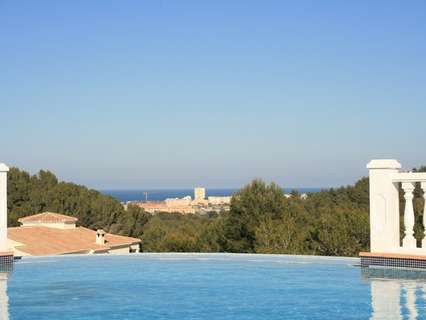 Villa con vistas al mar en venta en Javea, situada en una urbanización tranquila y orientada al sur. En la planta baja hay un salón, comedor y cocina totalmente equipada, además hay 2 dormitorios dobles con baño en-suite. En la primera planta hay un tercer dormitorio con baño en-suite y terraza. En el exterior hay un jardín mediterráneo de bajo mantenimiento, una terraza cubierta, una terraza solárium con piscina infinita y jacuzzi y un amplio aparcamiento.