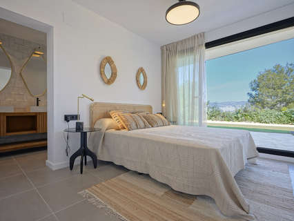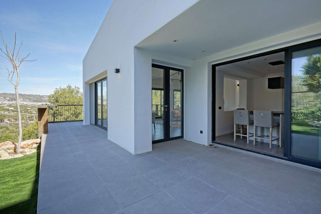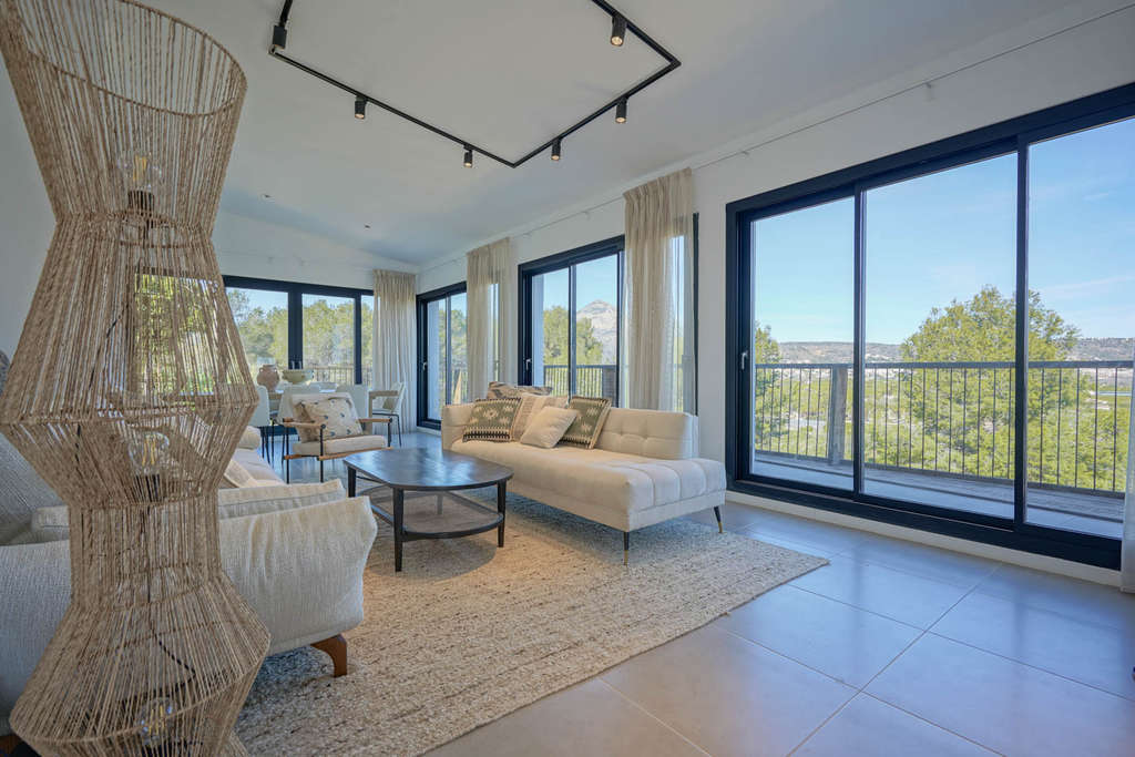 Exclusiva Villa de Obra Nueva con vistas al mar en venta en Puerta Fenicia, Jávea.Descubra esta hermosa y moderna villa, recientemente terminada, situada en una ubicación ideal a poca distancia tanto del encantador centro histórico de Jávea como de la hermosa playa de arena. Disfrute de vistas panorámicas sobre el majestuoso Montgó, extensos campos de naranjos, el emblemático Cabo de San Antonio y el azul del mar Mediterráneo. Distribuida en dos plantas, esta villa ofrece un equilibrio perfecto entre lujo y funcionalidad. La planta superior alberga un generoso salón-comedor, donde los grandes ventanales no sólo proporcionan abundante luz natural, sino que también ofrecen amplias vistas de los alrededores. La cocina semiabierta está equipada con materiales de primera calidad, incluida una amplia isla de cocina. También hay un práctico lavadero con acceso directo desde la cocina y un aseo de invitados. Las ventanas correderas de la cocina dan acceso a una amplia terraza parcialmente cubierta y a un bonito jardín, el lugar ideal para disfrutar del sol y las vistas. En la planta baja hay tres elegantes dormitorios, cada uno con su propio cuarto de baño de lujo. Todos los dormitorios tienen acceso directo a la terraza y a la piscina. La villa está equipada con comodidades modernas, como calefacción eléctrica por suelo radiante y aire acondicionado, que garantizan un confort óptimo durante todo el año. Materiales naturales como la piedra natural y la madera se han combinado en la construcción de esta villa para un resultado elegante y atemporal. Una oportunidad única de vivir en una de las zonas más cotizadas de Jávea, donde el lujo y el confort van de la mano con la belleza de la naturaleza.
