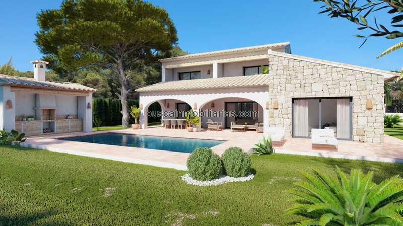 Proyecto de villa independiente de estilo tradicional en urbanización La Cala de Javea.La villa ocupa una parcela de 1005 m2, constando la propiedad de 180 m2 de vivienda distribuidos en dos plantas, más 142 m2 de terrazas exteriores, 99 m2 de parking, y piscina de 36 m2.Esta exclusiva casa moderna está bien ubicada dentro de la urbanización de La Cala en Javea, a 5 minutos en coche de la zona de playa de Cala de Portixol y a 10 minutos de la playa del Arenal. La urbanización de La Cala está dotada de alumbrado, alcantarillado, tendido eléctrico subterráneo, red de abastecimiento de agua, red telefónica subterránea y suministro central de gas.La villa tendrá 3 dormitorios, 2 baños, 1 aseo de cortesía, una sala de estar de planta abierta, una cocina moderna y un lavadero/lavadero contiguo.La distribución de la vivienda es ideal, en la planta baja habrá un espacio diáfano de 67 m² para la zona de salón-comedor y para la cocina quedará totalmente amueblada y dispondrá de isla, fregadero y campana extractora.Desde esta zona se accede a la terraza cubierta de 26 m² junto a la piscina a través de 2 puertas correderas.En la misma planta habrá un dormitorio con armario empotrado, baño en suite equipado con ducha, aseo y lavadero.En la planta superior habrá 2 dormitorios dobles equipados con armarios empotrados y acceso directo a la terraza y un baño equipado con plato de ducha.Además, toda la vivienda estará equipada con aire acondicionado por conductos y suelo radiante.En el exterior piscina de 9x4 m² y zona de barbacoa.Toda la parcela estará completamente vallada y se accederá a través de la puerta metálica para coches oa través de la puerta peatonal.