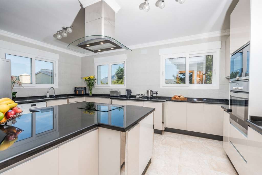 Esta excepcional villa de 6 dormitorios y 5 baños está situada en unos hermosos jardines que ofrecen total privacidad. Esta impresionante propiedad combina el diseño tradicional mediterráneo con las comodidades modernas de alta gama. La villa le da la bienvenida con un impresionante vestíbulo, con techos altos y una gran escalera doble de mármol y acero inoxidable. Las zonas de estar diáfanas están llenas de luz natural. En la planta baja encontramos una cocina moderna totalmente equipada con todos los electrodomésticos, un gran salón-comedor diáfano, con puertas que dan directamente a la terraza cubierta. También en esta planta tenemos una habitación doble de buen tamaño y una habitación individual que podría utilizarse como despacho o como dormitorio, estas habitaciones comparten un cuarto de baño con ducha. En la planta superior hay un impresionante rellano con pintorescas vistas hacia la montaña del Montgó. Tenemos cuatro dormitorios en este nivel, todos con baño en suite, y el dormitorio principal tiene un baño en suite con bañera. También hay un gran balcón que da a la parte trasera de la propiedad con vistas al jardín y a la piscina, al que se puede acceder a través del dormitorio principal y del dormitorio doble adyacente. La parcela de 1800 m² orientada al sur está perfectamente ajardinada para facilitar su mantenimiento, la gran piscina climatizada se puede disfrutar durante todo el año y cuenta con una cascada. La terraza soleada tiene mucho espacio con asientos y tumbonas, además de una zona de barbacoa cubierta y equipada. En la parte delantera de la propiedad hay un impresionante camino de entrada con aparcamiento para varios coches, al que se accede a través de una puerta eléctrica. Otras características adicionales son la calefacción por suelo radiante, aire acondicionado frío y calor, sistema de seguridad y persianas eléctricas en todas las ventanas. Situada a pocos minutos de las galardonadas playas de Jávea, de restaurantes de alta cocina, colegios internacionales y campos de golf, esta villa ofrece un estilo de vida inigualable en uno de los enclaves más prestigiosos de la Costa Blanca.