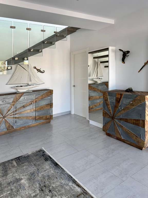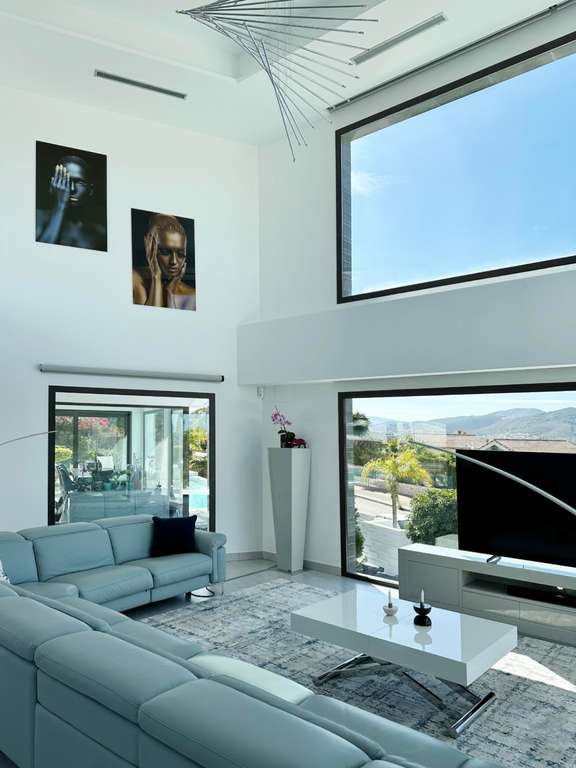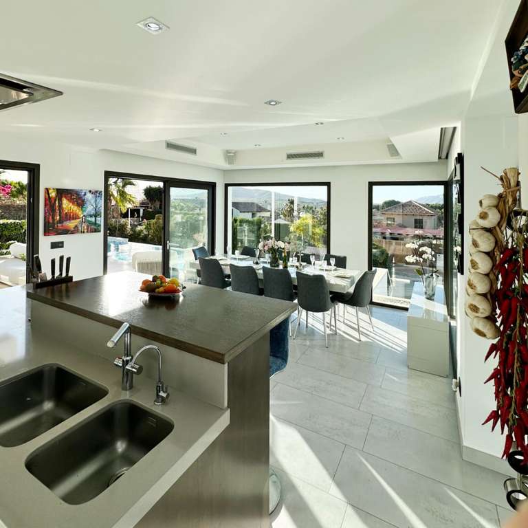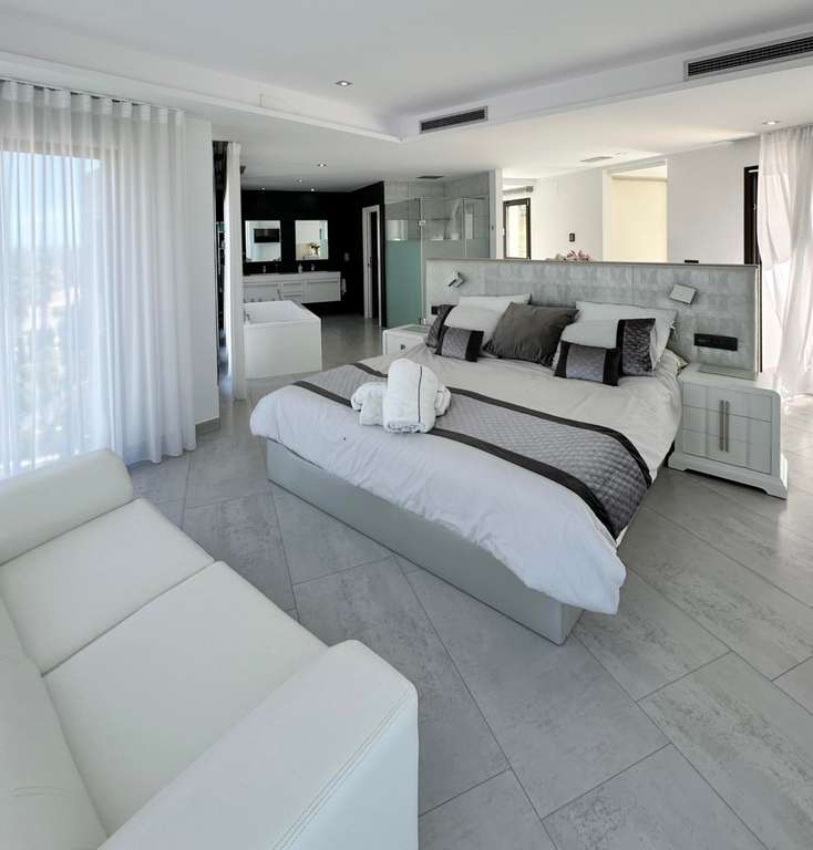 Nos complace presentarles esta sublime Villa de Lujo moderna en Jávea, ubicada en Cap Martí, un lugar privilegiado. Al entrar nos recibe un amplio hall que se conecta con un grandioso salón de doble altura, con muchísima luz natural, gracias sus grandes ventanales, que nos permiten admirar su precioso exterior. Una magnifica y amplia cocina abierta al comedor, perfecta para disfrutar con familiares y amigos. Cinco dormitorios dobles, con armarios empotrados y ocho baños completos. Una sala de cine, una piscina cubierta climatizada, un gimnasio y una sauna, además de un lavadero, componen el interior. En el exterior nos encontramos con una preciosa piscina infinity con vistas privilegiadas al mar y a la montaña, conectada a una piscina pequeña, ideal para los más pequeños, además de un Jacuzzi, ideal para relajarnos con una copa de champán. Un hermoso jardín con flores, arboles y césped. Una cocina exterior equipada con barbacoa en una terraza cubierta, que nos permite disfrutar de comidas o cenas. Un garaje y un cargador de vehículos eléctricos, componen el exterior. Toda la villa viene equipada con ventanas de doble acristalamiento, aire acondicionado f/c y paneles solares.