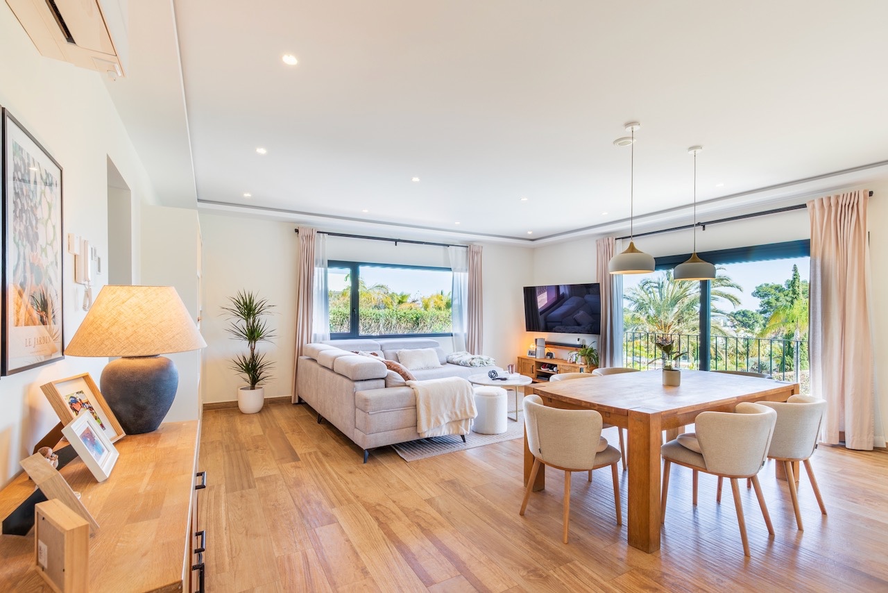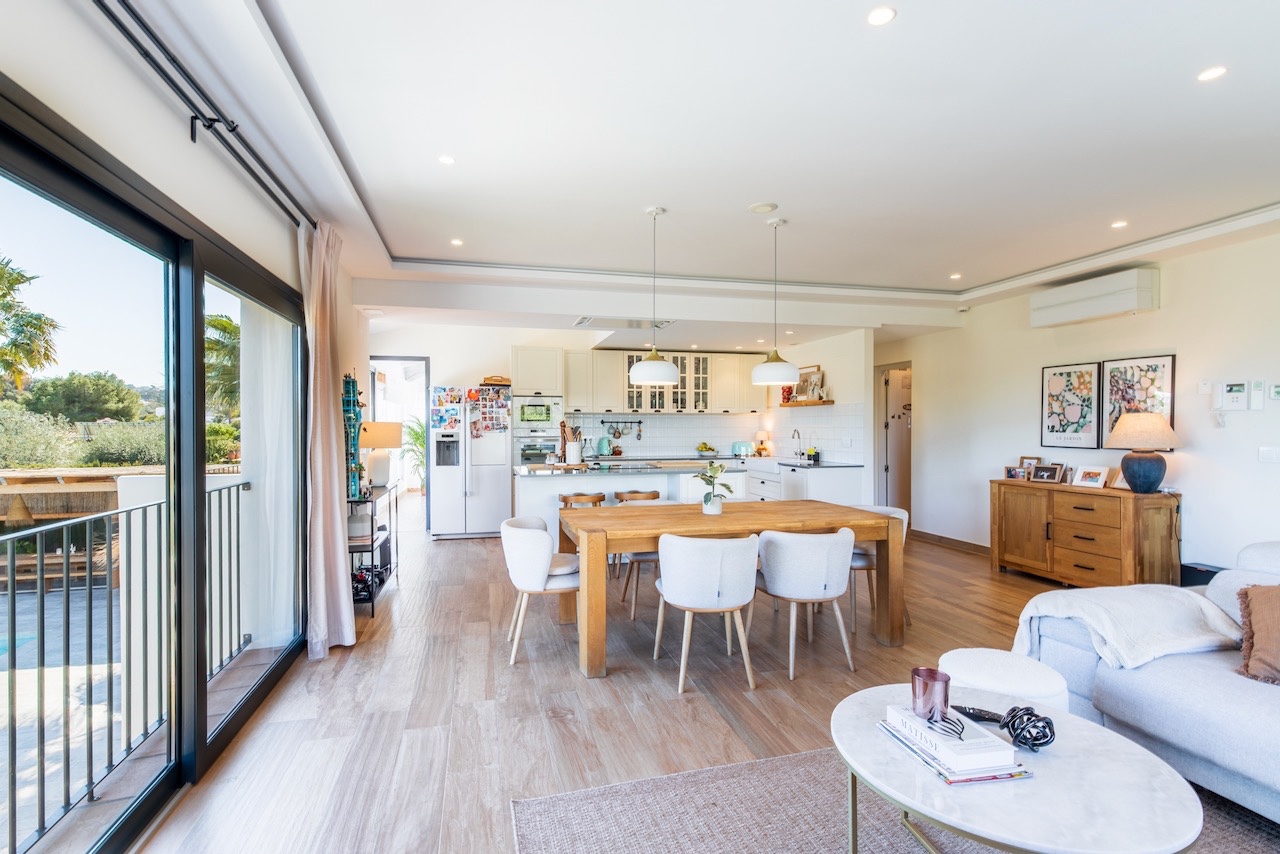 Ubicada en el tranquilo y codiciado barrio de Adsubia, en Jávea, esta villa de estilo ibicenco totalmente renovada ofrece una combinación perfecta de privacidad, elegancia y confort moderno, con todas las comodidades y el mar a solo unos minutos. Al entrar en la planta principal, le da la bienvenida una luminosa y espaciosa zona de estar diáfana con una cocina totalmente equipada, diseñada pensando tanto en el estilo como en la funcionalidad. En esta planta se distribuyen tres cómodos dormitorios y dos modernos cuartos de baño (uno de ellos en suite), junto con una naya acristalada, que ofrece un espacio ideal para disfrutar del clima mediterráneo durante todo el año. La planta baja incluye un apartamento de invitados totalmente independiente con salón, cocina, dormitorio y cuarto de baño, así como un versátil gimnasio con su propio cuarto de baño que puede convertirse fácilmente en un dormitorio adicional. Unos trasteros y salas técnicas adicionales completan esta planta, ofreciendo practicidad y flexibilidad.