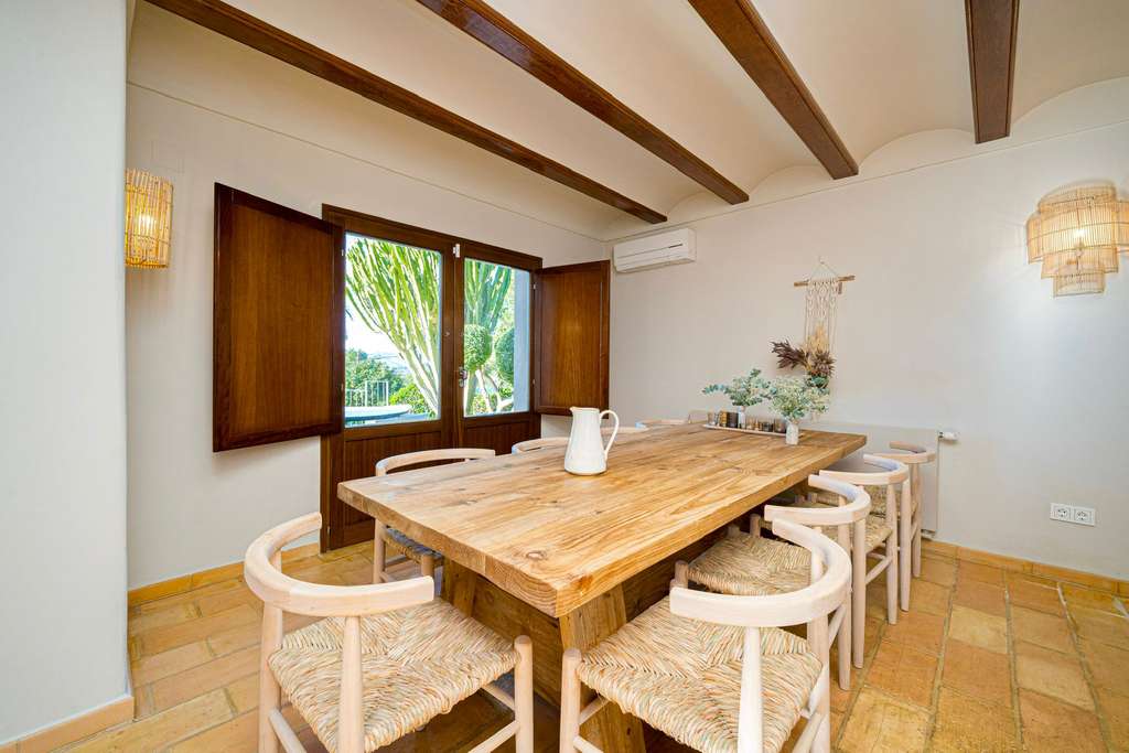 Nos orgullece preséntales, esta maravillosa villa a los pies del Montgó y con preciosas vistas al valle, a un corto trayecto en coche de todos los servicios. Esta preciosa villa esta compuesta por cinco amplios dormitorios, cuatro baños completos y un aseo. En la planta principal tenemos un amplio salón-comedor con una chimenea de leña y una preciosa cocina abierta, totalmente equipada, un dormitorio completo con baño en suite, un aseo y otro dormitorio con baño en suite y entrada independiente. En la planta superior, nos encontramos el dormitorio principal con salida a una terraza privada, otro dormitorio, un vestidor y un amplio baño completo. En la planta inferior al nivel de la piscina, tenemos una entrada independiente, a un dormitorios con baño en suite, perfectos para nuestros invitados. En el exterior tenemos un precioso jardín con riego automático, una piscina de buen tamaño y varias terrazas con y sin sombra, perfectas para disfrutar del exterior, admirando las vistas o tomando el sol. Además, cuenta con una cocina exterior en la naya, que nos invita a disfrutar de cenas, con amigos y familiares. Toda la villa viene equipada con ventanas de doble acristalamiento, calefacción central de gasoil, suelo radiando en los baños, aire acondicionado f/c, trastero, lavadero, y deposito de agua de 1000 litros. Todo esto hace de esta villa, un lugar ideal para disfrutar tanto del verano como del invierno.