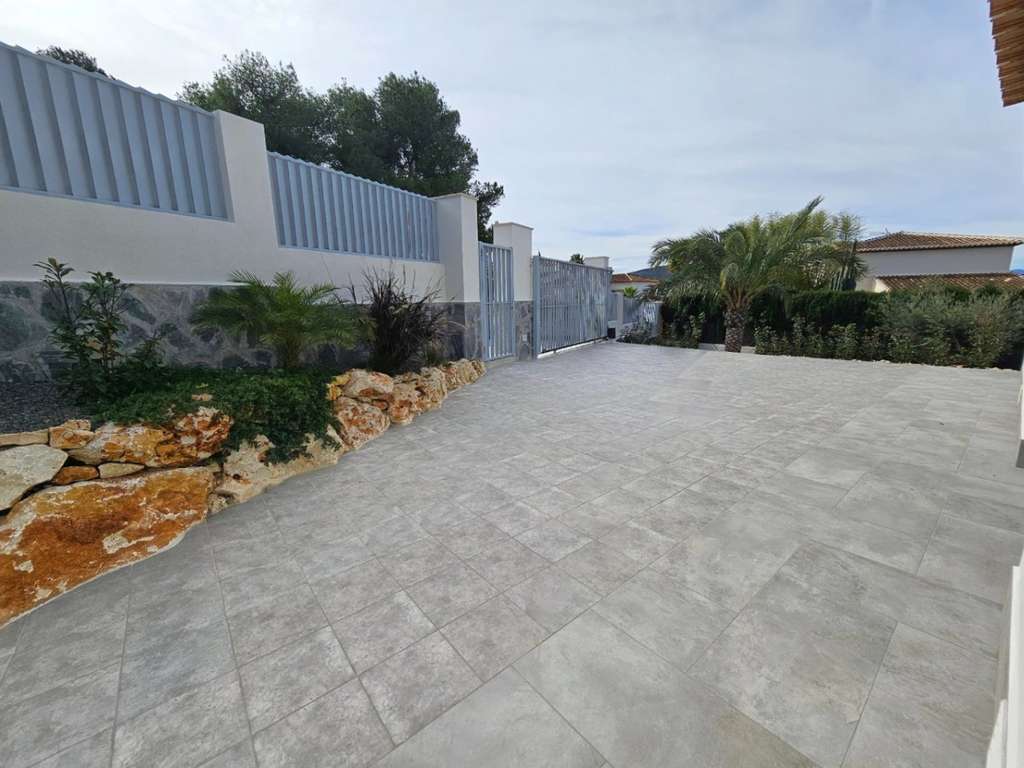Descubra esta luminosa y moderna villa en Jávea, a paca distancia en coche de la playa y de todos los servicios. Al llegar a la propiedad tenemos la opción de entrar por dos calles, desde la calle baja accedemos a un parking cubierto para un vehículo y descubierto para dos y en la calle alta parking para un vehículo con acceso llano hasta la vivienda. Al entrar en la villa somos recibidos por un hall, perfecto para recibir a nuestros invitados. Un luminoso salón-comedor, con salida a las terrazas y a la piscina. La amplia cocina, es de concepto abierto con isla y con un lavadero/trastero adyacente con entrada desde el parking. La zona de descanso se compone de tres dormitorios; un gran dormitorio principal con armario empotrado, baño en suite con ducha y salida a la terraza y a la piscina, dos dormitorios dobles con armarios empotrados, que comparten un baño con ducha Jack & Jill y un aseo de cortesía. Todos los baños tienen WC flotantes. En el exterior tenemos un bonito jardín de estilo Mediterráneo de fácil mantenimiento con riego automático y todo iluminado. La piscina esta rodeada de terrazas abiertas, con bonitas vistas del Montgó y una terraza cubierta al lado del salón-comedor. Toda la propiedad esta equipada con suelo radiante, aire acondicionado f/c y ventanas de doble acristalamiento.