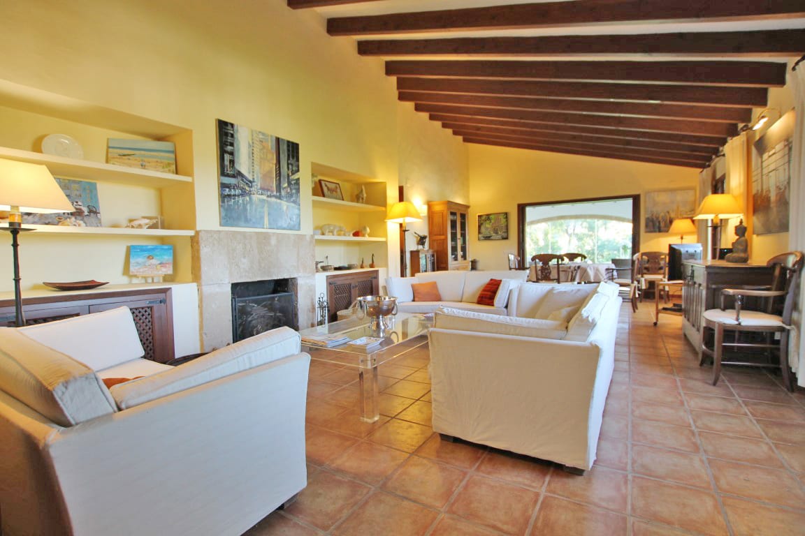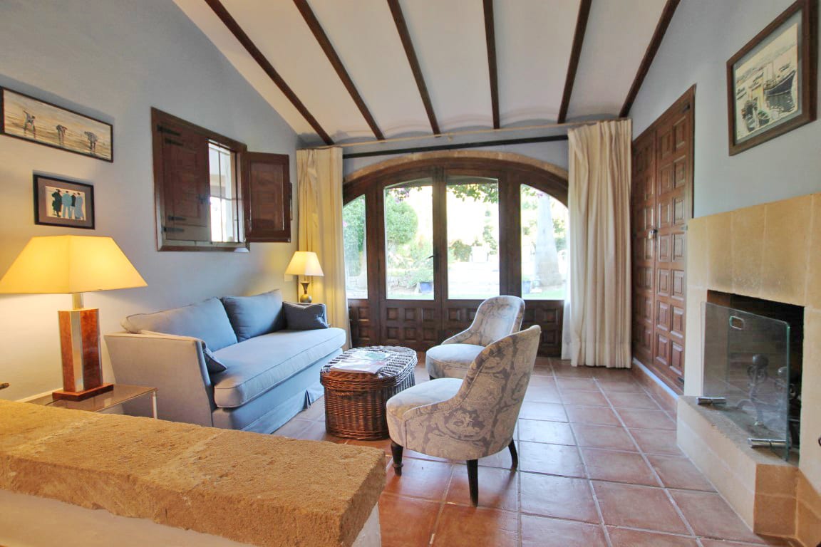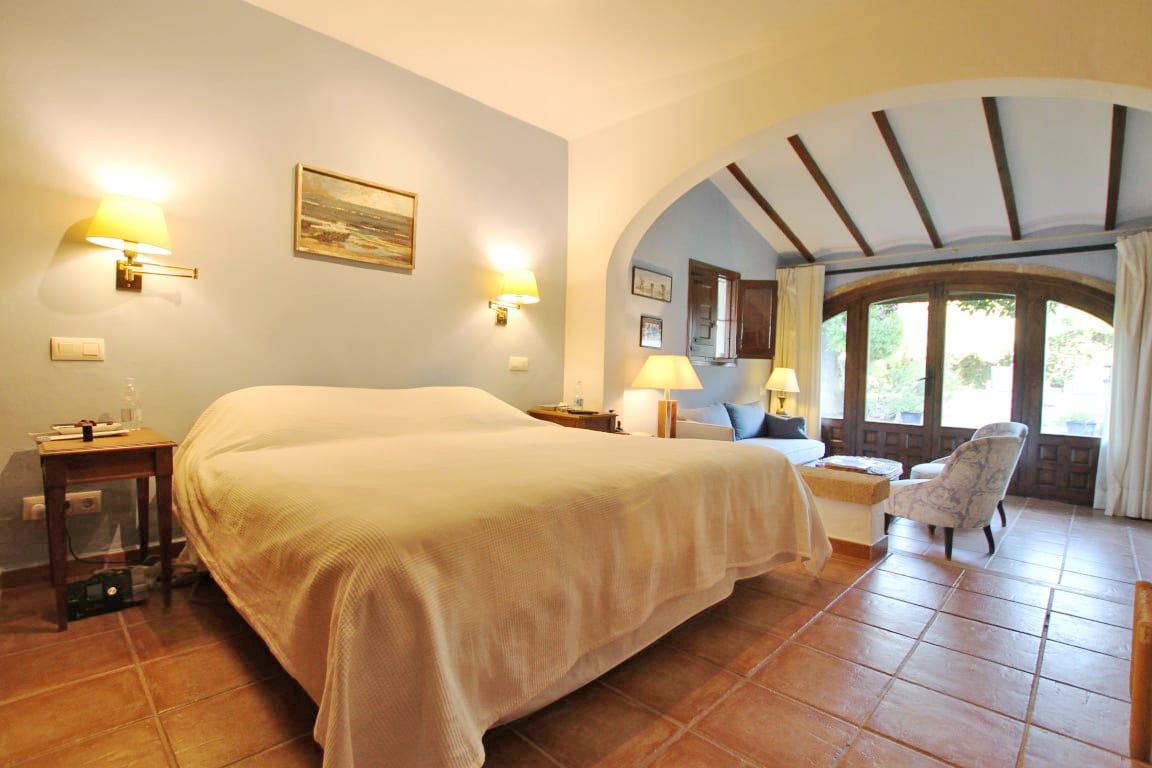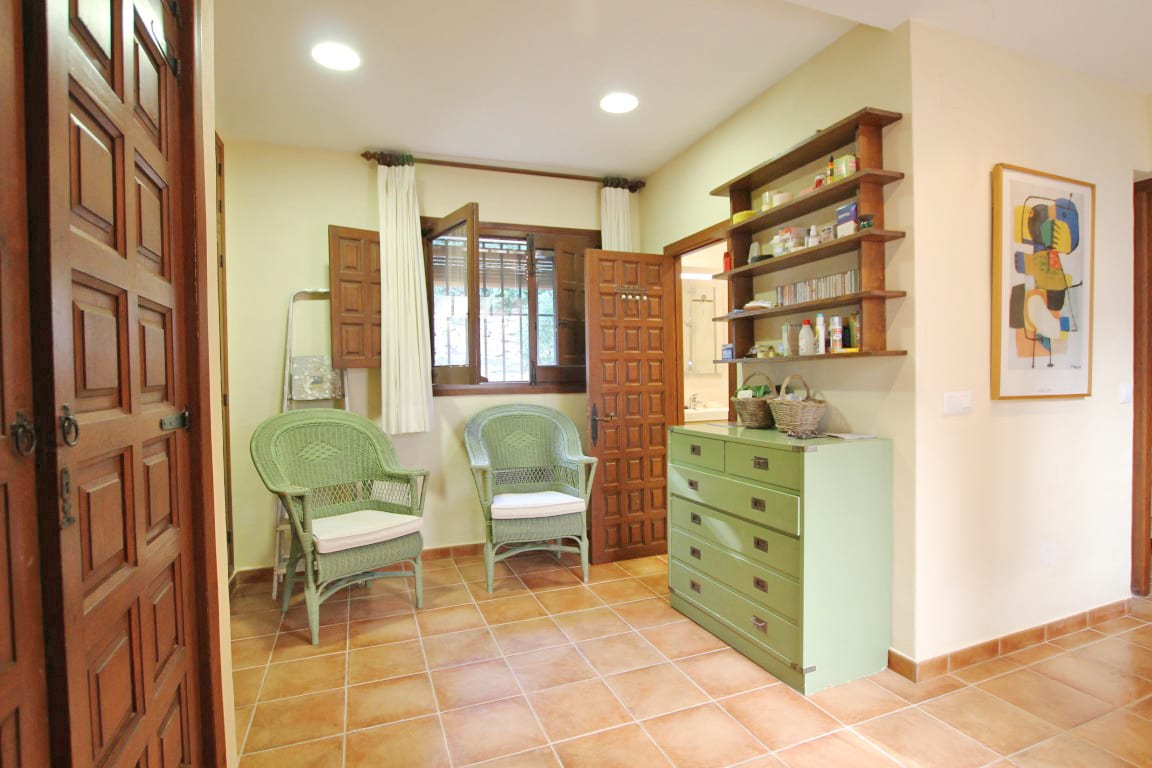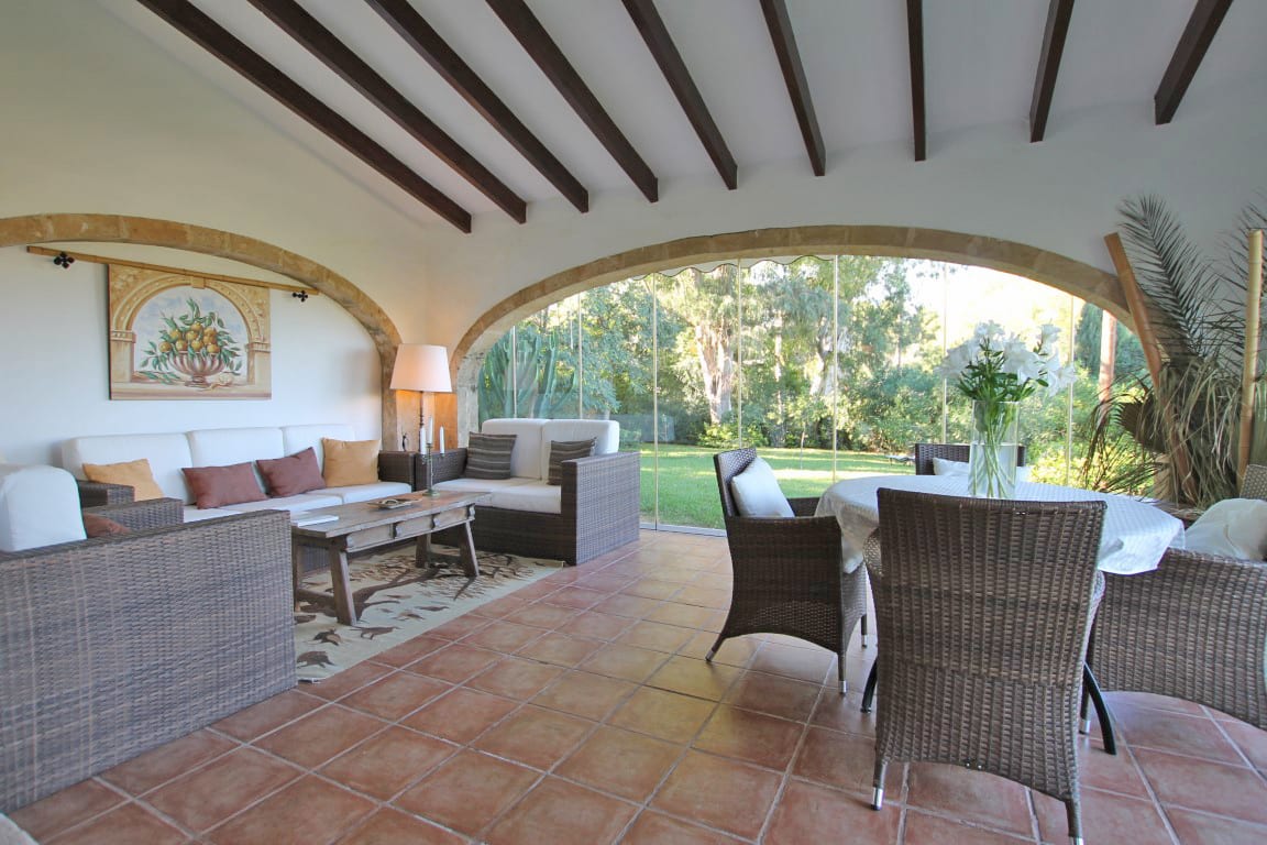 Aún con muchos materiales tradicionales utilizados, como los techos con vigas y suelo de terracota hecho a mano, la casa principal tiene una amplia sala de estar junto con una terraza cubierta acristalada y una terraza cubierta abierta desde donde se puede disfrutar de las hermosas vistas.