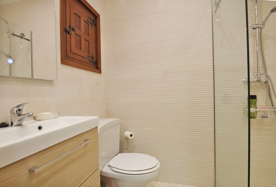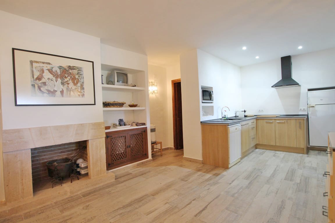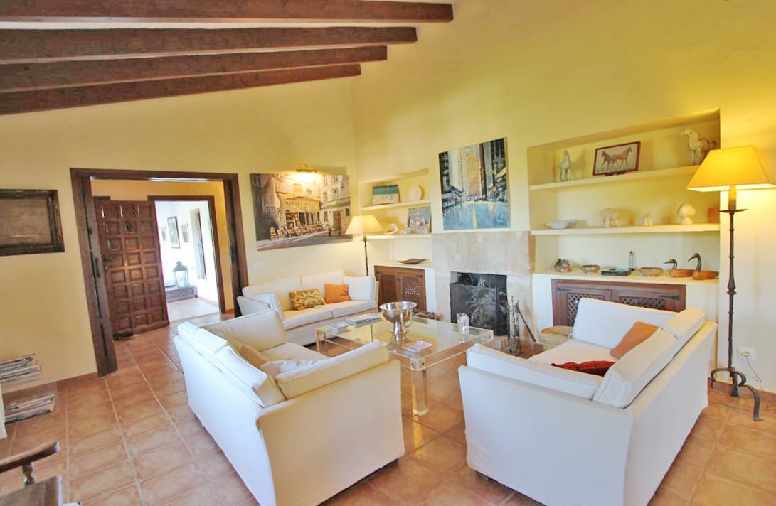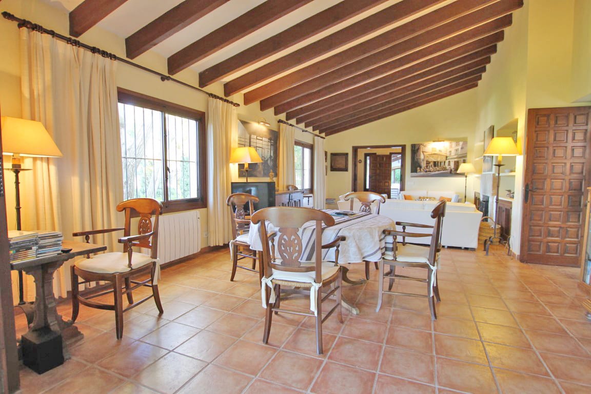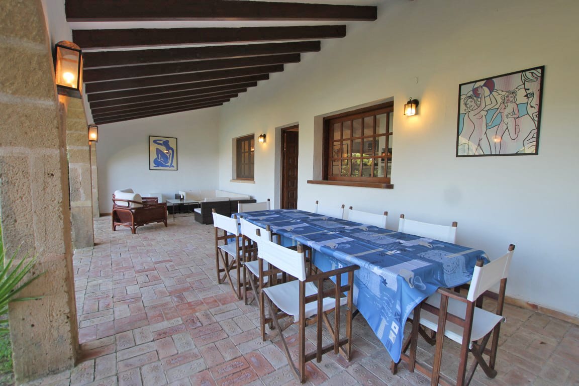 Aún con muchos materiales tradicionales utilizados, como los techos con vigas y suelo de terracota hecho a mano, la casa principal tiene una amplia sala de estar junto con una terraza cubierta acristalada y una terraza cubierta abierta desde donde se puede disfrutar de las hermosas vistas.