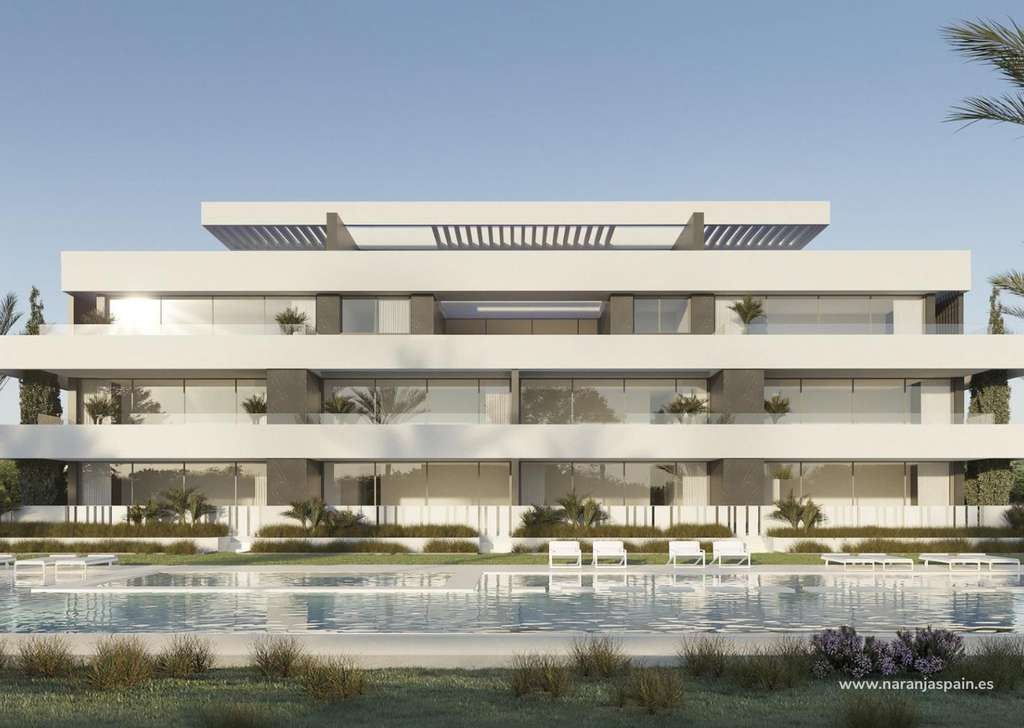 Complejo residencial de obra nueva de apartamentos y áticos con piscina comunitaria exterior, parking, trastero, ascensor, gimnasio, spa comunitario con piscina cubierta climatizada, sauna, jacuzzi en La Nucia.