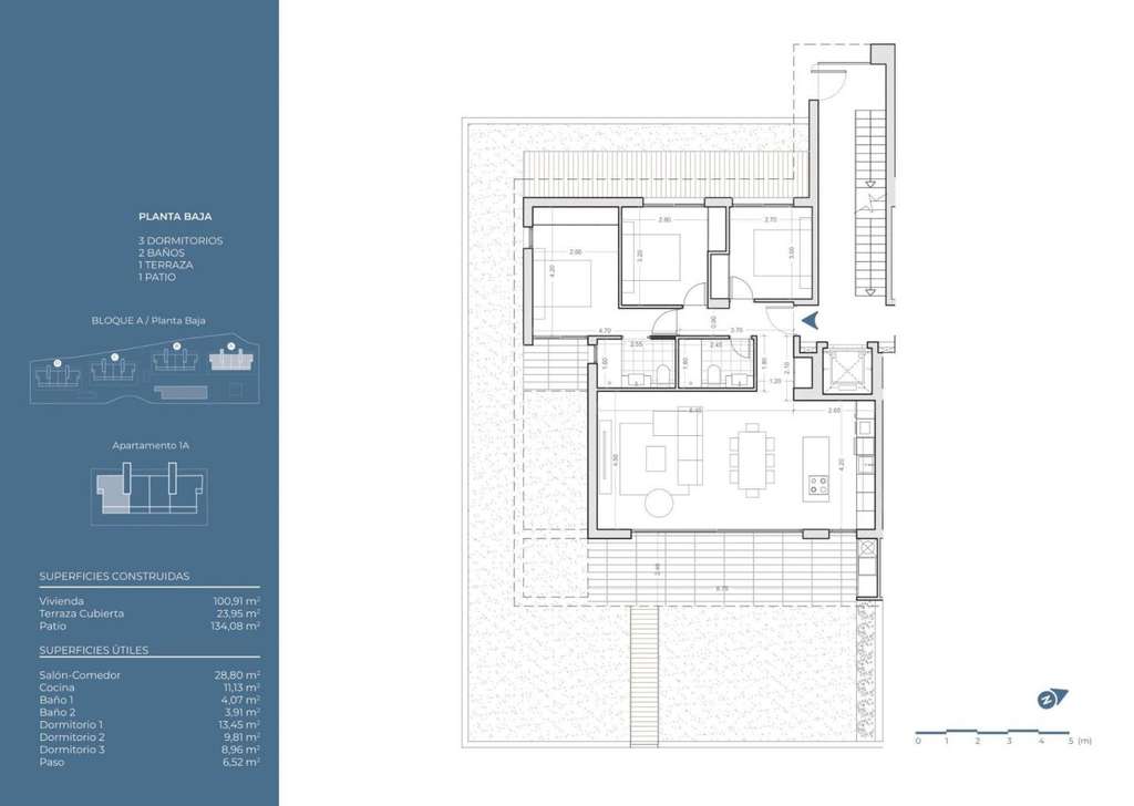 Viviendas modernas de 2 y 3 dormitorios, todas con 2 baños, cocina americana con amplio salón, armarios empotrados, terraza, plaza de garaje subterráneo.Los áticos disponen de solarium privado. Los apartamentos de 3 dormitorios de la planta baja disponen de jacuzzi privado.