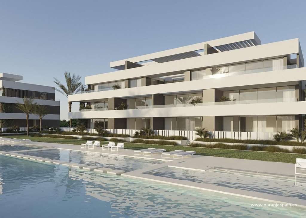 Complejo residencial de obra nueva de apartamentos y áticos con piscina comunitaria exterior, parking, trastero, ascensor, gimnasio, spa comunitario con piscina cubierta climatizada, sauna, jacuzzi en La Nucia.