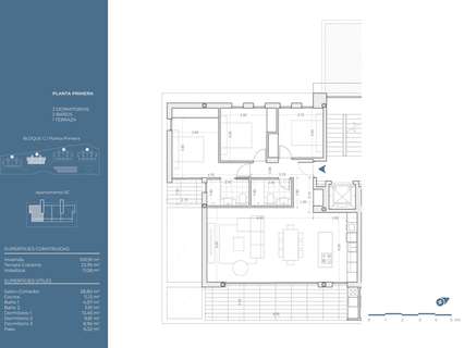 Cocina de diseño alemán, Burger o similar, con encimera de Silestone, totalmente equipada. Electrodomésticos Siemens o similar. Placa de inducción, campana extractora, horno y frigorífico y lavavajillas integrados en los muebles. Puerta de acceso a la vivienda blindada con cerradura de seguridad acabada con cuarterones lacados a juego con la carpintería interior. Opción de instalar cerradura con mando a distancia desde smartphone o tablet.Armarios modulares con puertas batientes o correderas lacadas a juego con el resto de la carpintería, incluyendo maletero, cajonera y barra de colgar.La vivienda estará preparada para poder contratar internet de alta velocidad. Habrá suelo radiante eléctrico de bajo consumo en los baños. El video portero será electrónico con imagen en color y dispondrá de mando a distancia integrado desde teléfono o tablet. Aire acondicionado Samsung. Cada habitación tendrá su propia máquina interior y control independiente. El aire acondicionado tendrá mando a distancia. Se podrá controlar desde teléfono o tablet. Se realizará la instalación completa del Sistema de Aire Acondicionado, dotado de bomba de calor para proporcionar tanto refrigeración como calefacción. También se utilizarán conductos de fibra de vidrio. Las unidades interiores se ubicarán en el falso techo de la zona de baños y pasillo, mientras que la unidad exterior se instalará en la zona asignada en el proyecto. Ventilación. Instalación de renovación de aire interior en viviendas con tomas de extracción en baños y cocina y reloj para programación horaria. Piscina de uso comunitario con cloración salina y control automático de PH y cloro. En el sótano habrá gimnasio, piscina cubierta climatizada, jacuzzi, sauna, baño de vapor, cromoterapia y vestuarios con baños. Amplias zonas de terrazas y jardines con plantas autóctonas para usos múltiples en la zona comunitaria. El perímetro de la parcela se plantará con plantas que crearán un ambiente privado en el recinto a medida que crezcan. Habrá un sistema de videovigilancia para las zonas comunes.