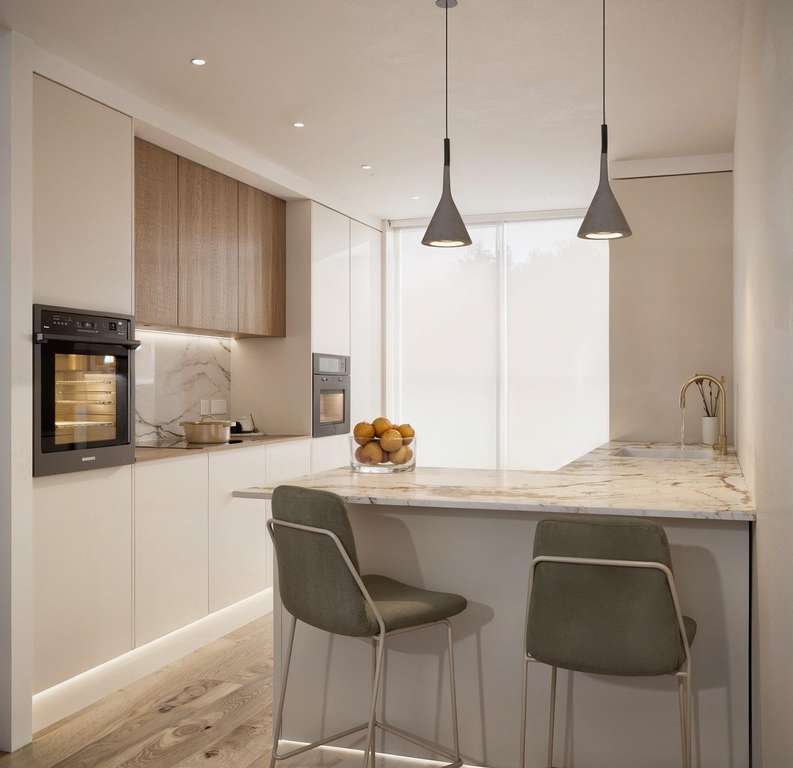 Los interiores están diseñados con distribuciones diáfanas, lo que maximiza la luz natural y crea una conexión fluida entre los espacios interiores y exteriores. Las cocinas, totalmente equipadas con electrodomésticos Bosch, se integran a la perfección con la zona de estar, mientras que los baños incluyen calefacción por suelo radiante, mobiliario moderno, espejos y mamparas de ducha.
