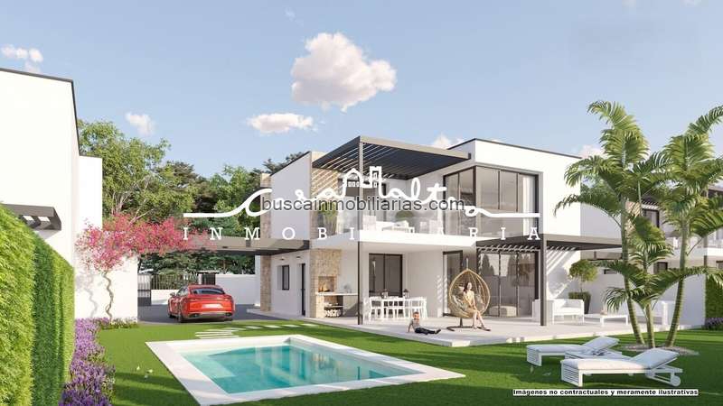 Modernas villas con parcela donde disfrutar de la zona de piscina y su amplio jardín donde tomar el sol, disfrutar del aire libre e ideal para guardar varios vehículos en su zona de parking.