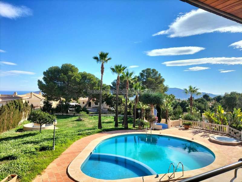 Fantástica vivienda con superficie de 600 m2 distribuida en espacioso hall, 4 amplios dormitorios cada uno con su baño en suite, aseo de cortesía, gran salón comedor de 100 m2 con chimenea, amplia cocina independiente con zona de comedor, varias terrazas cubiertas, con vistas despejadas al mar y montaña.