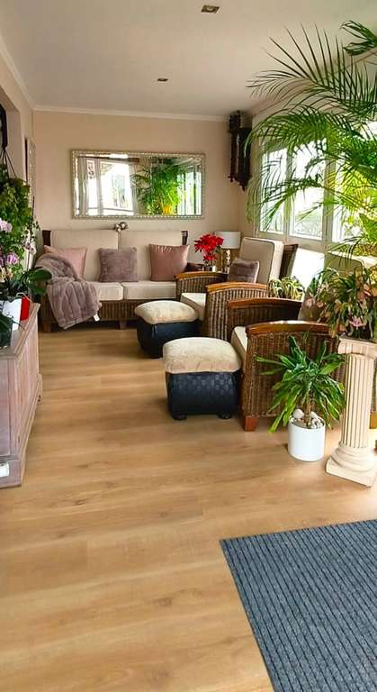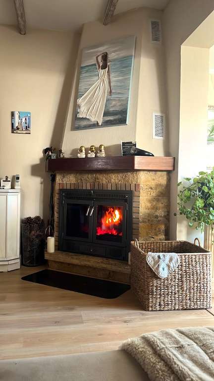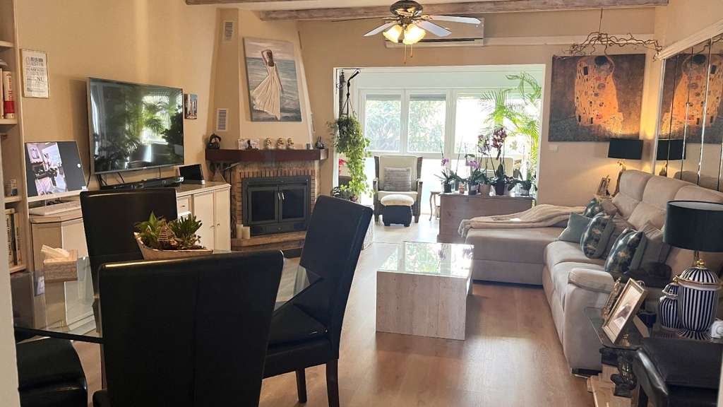 Luminoso salón-comedor con chimenea, aire acondicionado y acceso directo a la terraza acristalada