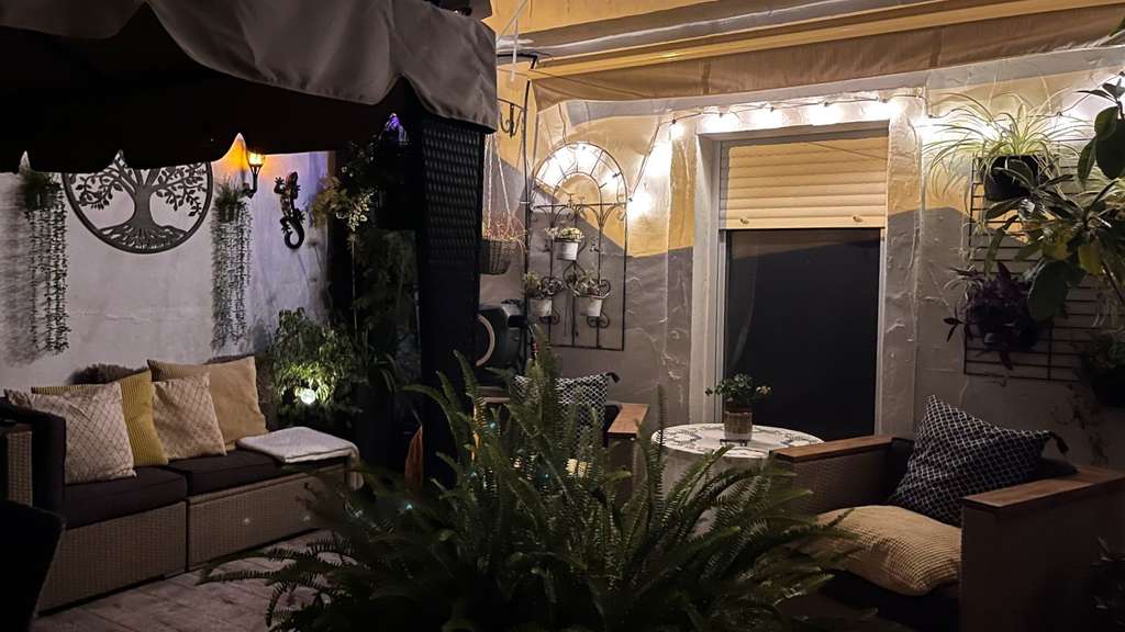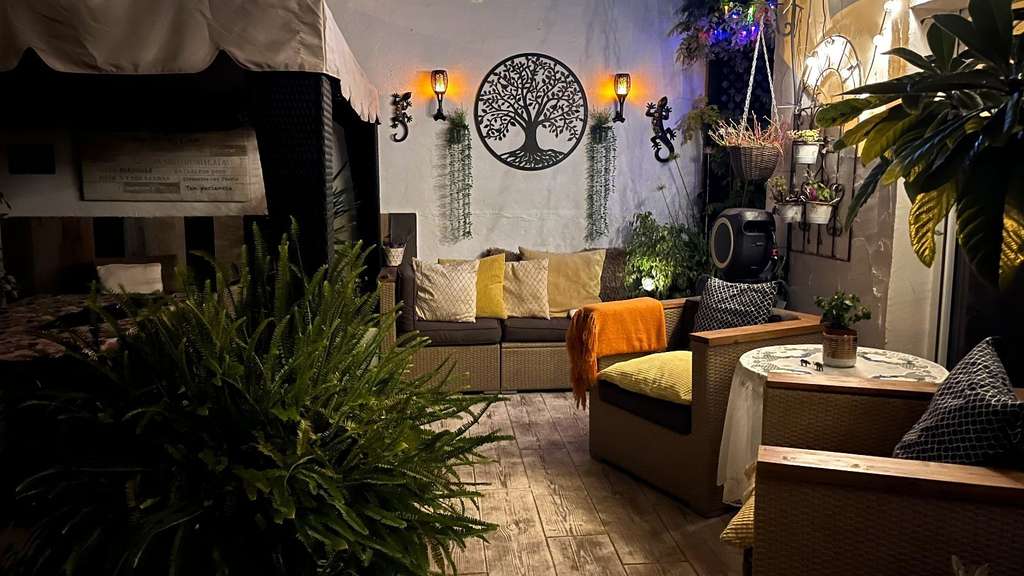 Jardín decorativo y terraza exterior ideales para relajarse o disfrutar en familia