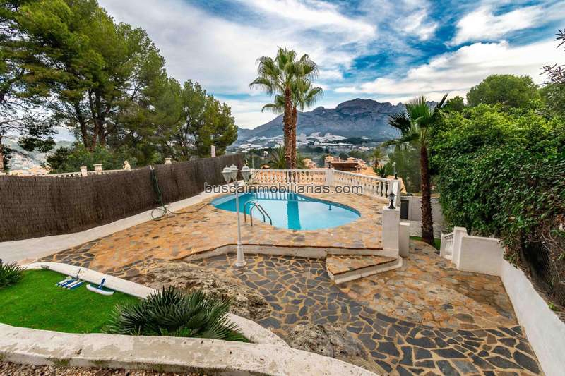 Precioso adosado de dos dormitorios y un baño, con apartamento independiente de un dormitorio y un baño, además de parking, piscina y parcela de 450m2 en urbanización tranquila entre Alfaz, Altea y La Nucía.