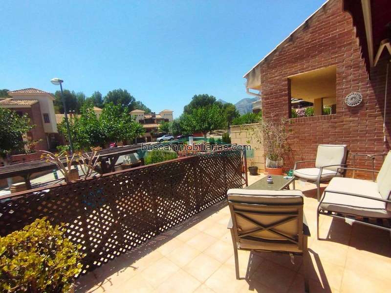 El exterior cuenta con una parcela privada que incluye zona de barbacoa, parking propio y acceso a la piscina comunitaria, un lugar perfecto para disfrutar del clima mediterráneo. La vivienda está equipada con aire acondicionado y calefacción de gas natural, lista para entrar a vivir de inmediato.