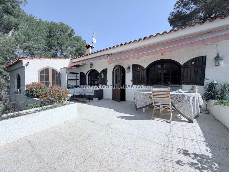 Se trata de un chalet independiente situado en una amplia parcela de 1.724 m2 rodeada de pinos, ideal para disfrutar de la naturaleza, la privacidad y el aire libre.