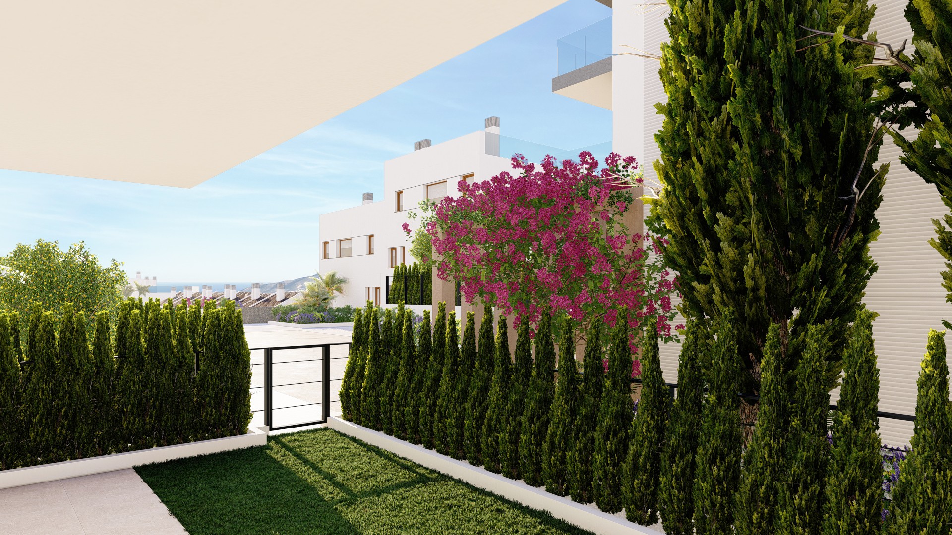 Las propiedades se distribuyen en 3 plantas, cuentan con 4 dormitorios, 3 baños, aseo de invitados, cocina abierta con zona de salón, armarios empotrados, varias terrazas con vistas, aparcamiento para dos vehículos y jardín con acceso directo a las zonas comunes. Muchas de ellas cuentan también con solárium donde podrá disfrutar de veladas al aire libre con sus amigos.