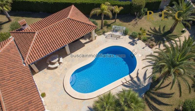 El exterior es un auténtico oasis privado con piscina y jardín mediterráneo, zona de barbacoa y varias áreas de descanso para disfrutar del clima soleado de Alicante.
