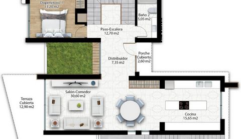 Estas villas están construidas en tres niveles: planta baja, planta superior y un semisótano con acceso independiente y un patio interior que proporciona luz natural y ventilación. Todas las viviendas cuentan con 4 o 5 dormitorios y 4 o 5 baños, un amplio salón-comedor diáfano, una cocina totalmente equipada con electrodomésticos Miele y una terraza cubierta con zona de barbacoa.