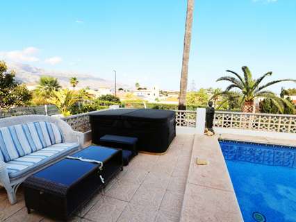 Ubicada en la codiciada zona de Bello Horizonte en La Nucía, a las afueras de Altea, esta encantadora villa familiar es el lugar perfecto para vivir todo el año. La propiedad está distribuida en dos plantas. El acceso principal lleva a un amplio garaje integrado y a un porche soleado, desde el cual unos escalones bajan hacia el jardín, donde se encuentran naranjos, limoneros maduros y hermosas palmeras.En el nivel de entrada se encuentra el dormitorio principal con baño en suite, un aseo de cortesía, una espaciosa cocina, un lavadero independiente, y un gran salón-comedor con chimenea, aire acondicionado y calefacción central. Grandes ventanales ofrecen vistas espectaculares al mar, abarcando Altea, Albir y Calpe. Junto al salón, una impresionante terraza con vistas panorámicas se convierte en el lugar perfecto para disfrutar de una copa de vino mientras se observa el atardecer.La planta baja es accesible tanto desde el interior como desde el exterior, lo que la convierte en una opción ideal para recibir visitas. Esta zona cuenta también con una cocina independiente, además de 4 dormitorios más (uno de ellos actualmente acondicionado como estudio de arte), 2 baños amplios y una preciosa terraza que da al área de la piscina climatizada. Los jardines de bajo mantenimiento, con palmeras, árboles frutales y arbustos, crean un ambiente relajante. La piscina es el lugar perfecto para refrescarse durante las cálidas y suaves noches de verano, y cuenta con el añadido de un jacuzzi junto a la piscina y una ducha exterior.La villa está equipada con paneles solares, una batería, una bomba de calor y una aerotermia.Lo que hace que esta villa sea muy eficiente energéticamente.