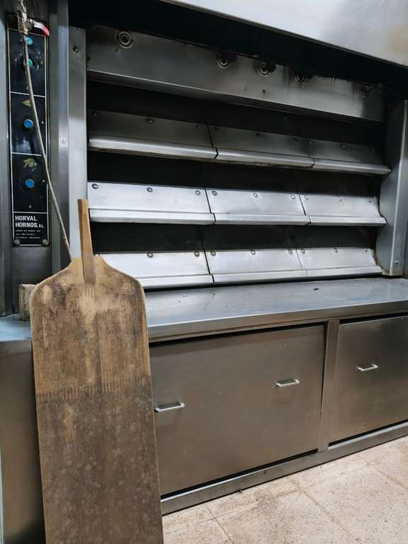 Hornos grandes para hornear pan Mezclador y espacio de trabajo Vitrinas de cristal y mostrador de caja Instalaciones con baño Un montacargas para transportar productos al sótano.
