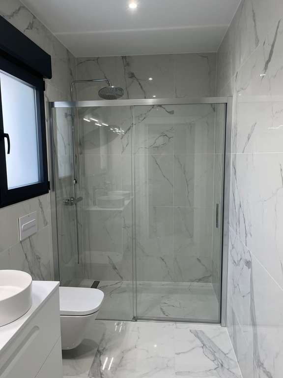 El interior del chalet independiente en la Romana está cuidadosamente diseñado para ofrecer el máximo confort y funcionalidad. Con tres dormitorios y dos baños, la distribución de la vivienda está pensada para satisfacer las necesidades de una familia moderna. Las persianas eléctricas añaden un toque de modernidad y comodidad, mientras que el aire acondicionado garantiza un ambiente agradable durante todo el año. La cocina está equipada con electrodomésticos de alta calidad, facilitando las tareas diarias. Los armarios empotrados en las habitaciones proporcionan un amplio espacio de almacenamiento, manteniendo el orden y la organización en el hogar.
