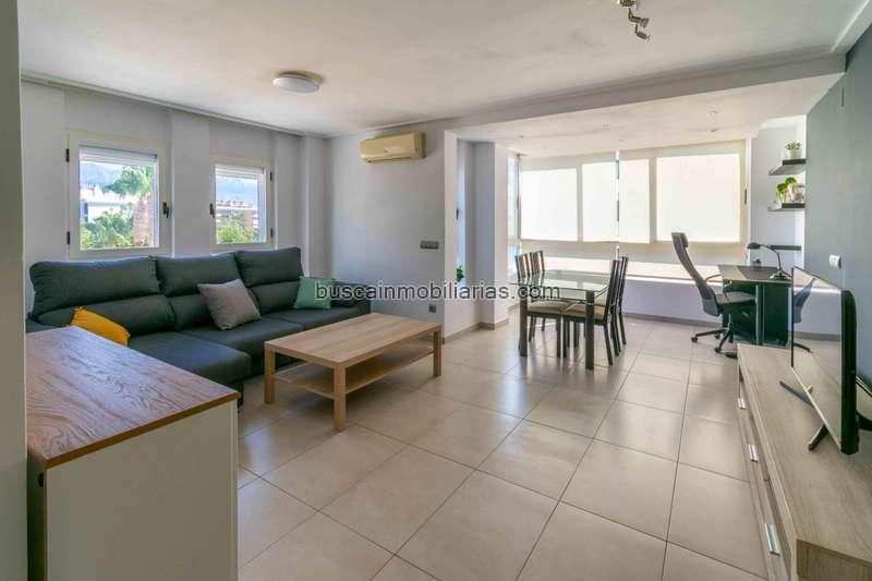 Tiene un gran salón comedor con la terraza acristalada, un baño completo con ducha, una habitación principal con luz natural y armarios y una habitación sencillo de una cama para invitados, también con luz natural y armario.