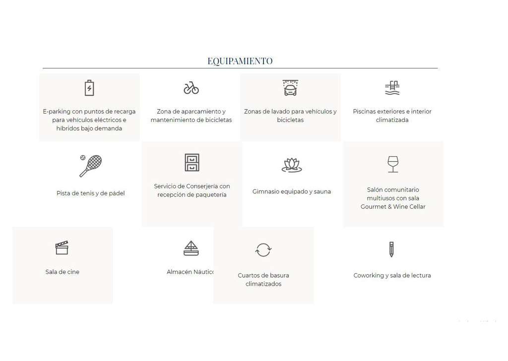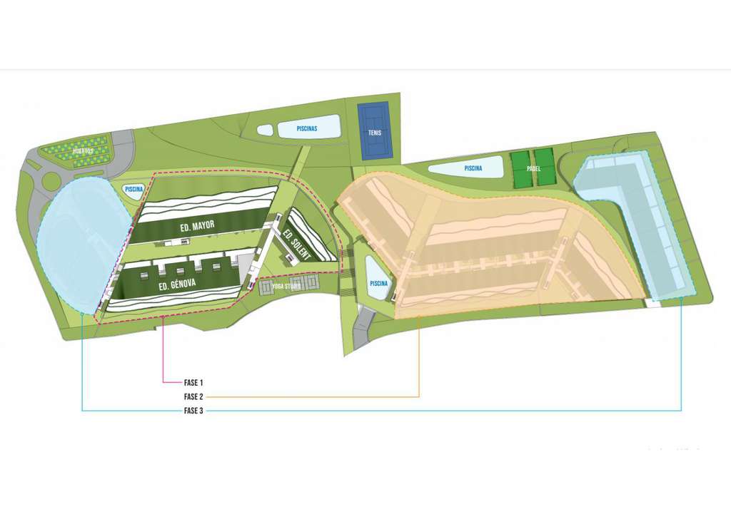 Rodeando a los edificios, y en los diferentes niveles de la urbanización interior, existirán diferentes láminas de agua ornamentales y varias piscinas. Así mismo, también dispondrá de piscina interior climatizada.