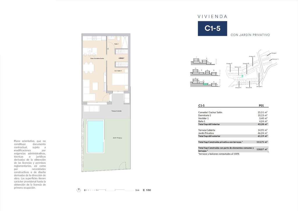 Elija entre apartamentos de 1, 2 o 3 dormitorios con salones diáfanos con cocinas integradas, grandes ventanales y acceso directo a terrazas orientadas al sur que llenan cada vivienda de luz natural. Los dormitorios principales son de generosas dimensiones y están acabados con materiales de calidad. Las opciones incluyen: