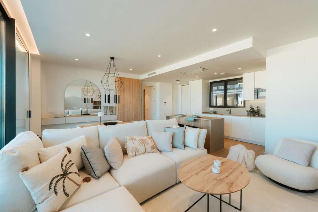 En Delfín Natura, el espacio, la luz y la naturaleza son protagonistas. Los apartamentos destacan por sus amplias terrazas – de aproximadamente 20 a más de 130 m2 – y las plantas bajas cuentan incluso con grandes jardines privados. Desde las terrazas se disfrutan impresionantes vistas al mar Mediterráneo y al Sierra Helada Natural Park. Los grandes ventanales proporcionan luz natural y una sensación de amplitud y apertura.~~El proyecto se ubica en una parcela de 30.000 m2 en una zona tranquila y completamente consolidada de Playa del Albir. Ha sido diseñado con respeto por la naturaleza, con jardines llenos de plantas autóctonas mediterráneas como buganvillas, olivos, almendros y palmeras. A lo largo del complejo hay fuentes decorativas y varias piscinas exteriores, además de una piscina cubierta climatizada.~~Todos los apartamentos están construidos con materiales de alta calidad e incluyen doble acristalamiento, aire acondicionado, calefacción por suelo radiante y un sistema aerotérmico eficiente para el agua caliente. Cada vivienda cuenta con plaza de aparcamiento privada y trastero con ventilación.~~La urbanización cerrada ofrece tranquilidad y seguridad gracias a la vigilancia por cámaras, control de accesos y servicio de conserjería 24 horas. No circulan coches por la superficie, por lo que es seguro moverse a pie o en bicicleta.~~Delfín Natura también ofrece servicios tipo resort, como restaurante, gimnasio, spa con sauna y piscina climatizada, espacios de coworking y lectura, sala de cine y zona de lavado de coches, proporcionando una experiencia de vida completa y lujosa en la Costa Blanca
