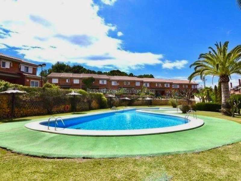 El bungalow tiene dos plantas más un amplio garaje en la planta -1. En la planta baja hay una cocina equipada, un salón, un aseo y su propio patio interior y exterior. En el segundo piso hay tres dormitorios, dos baños y un balcón. El apartamento dispone de aire acondicionado.