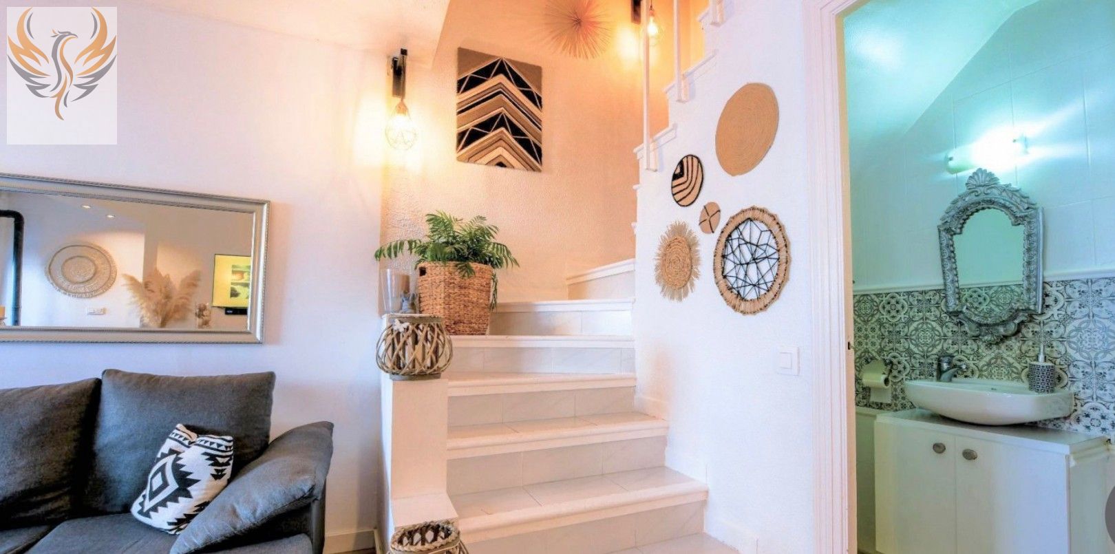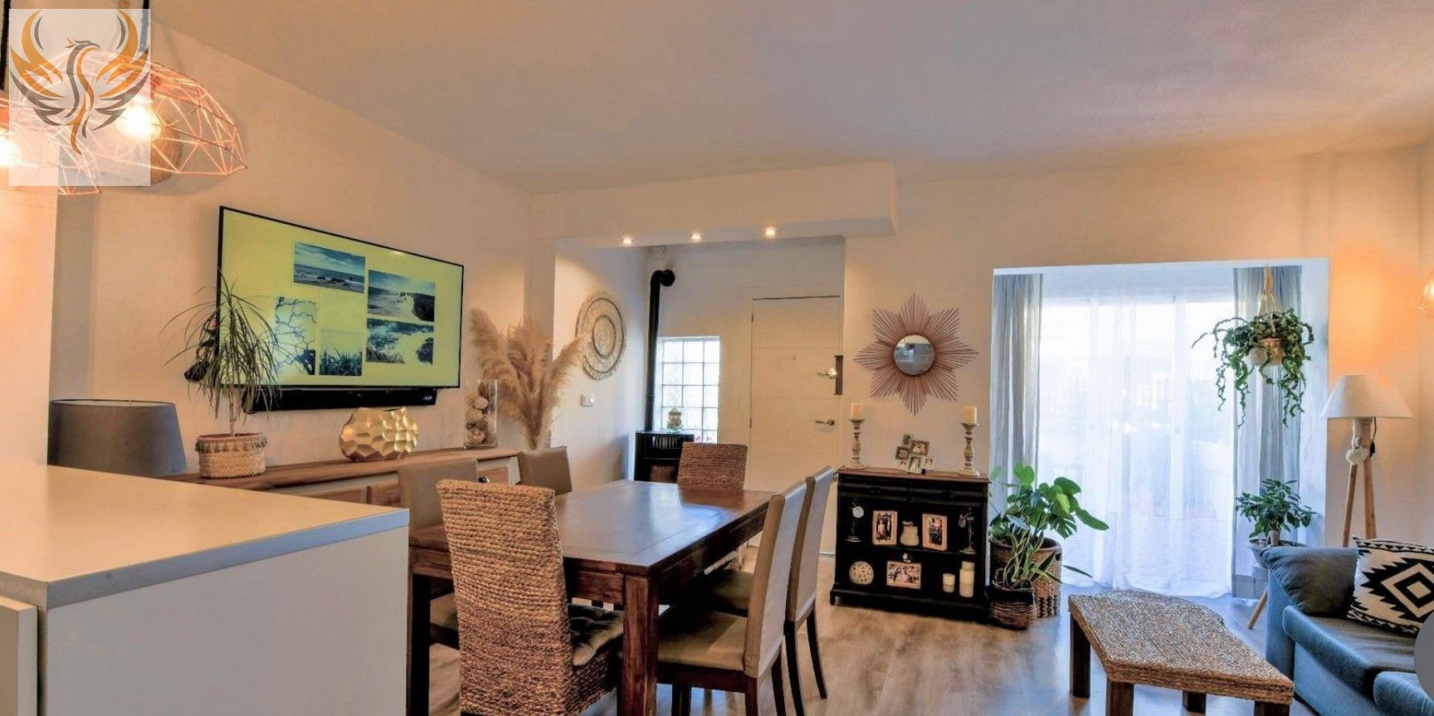 Adosado totalmente reformado en Albir, con excelente ubicacion cerca de centro y de la playa. Urbanización tranquila con , piscina y parking comunitario. Esta dividido en tres plantas, en la planta baja esta el salón comedor con chimenea de pellets y salida a la terraza, cocina abierta y un aseo, en la segunta planta dos dormitorios que comparten un baño completo con ducha, en la tercera planta una habitacion grande; es muy luminoso durante todo el día.