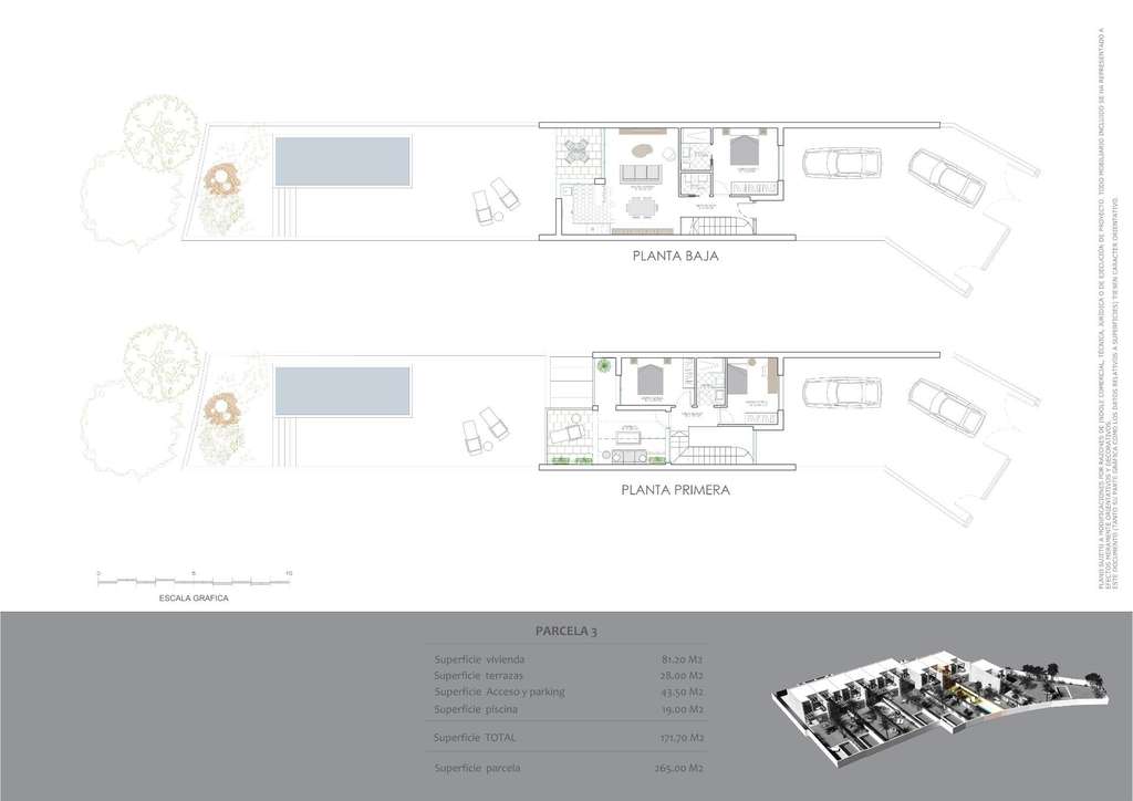 Las casas cuentan con dos plantas y una superficie construida de aproximadamente 110 m², distribuidos en: