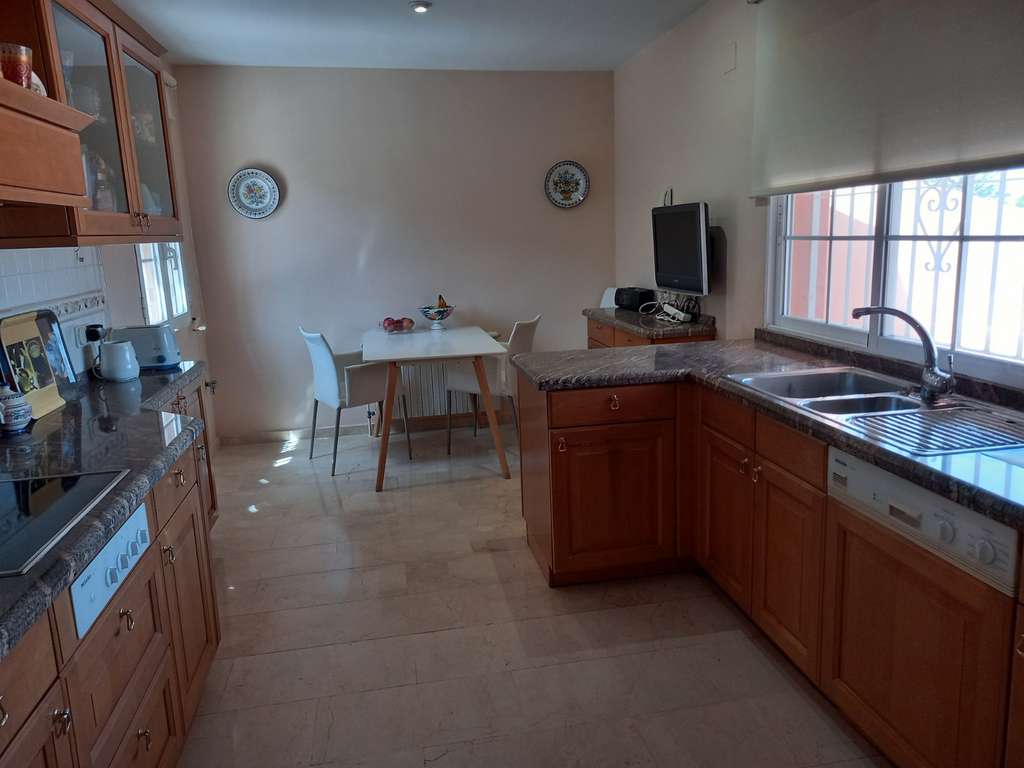 Dispone de cuatro dormitorios y tres baños, uno de ellos en suite con jacuzzi, además de un aseo exterior. La planta baja cuenta con suelos de mármol, mientras que en la segunda planta el suelo es cerámico. En la planta superior se encuentra terraza y solárium.