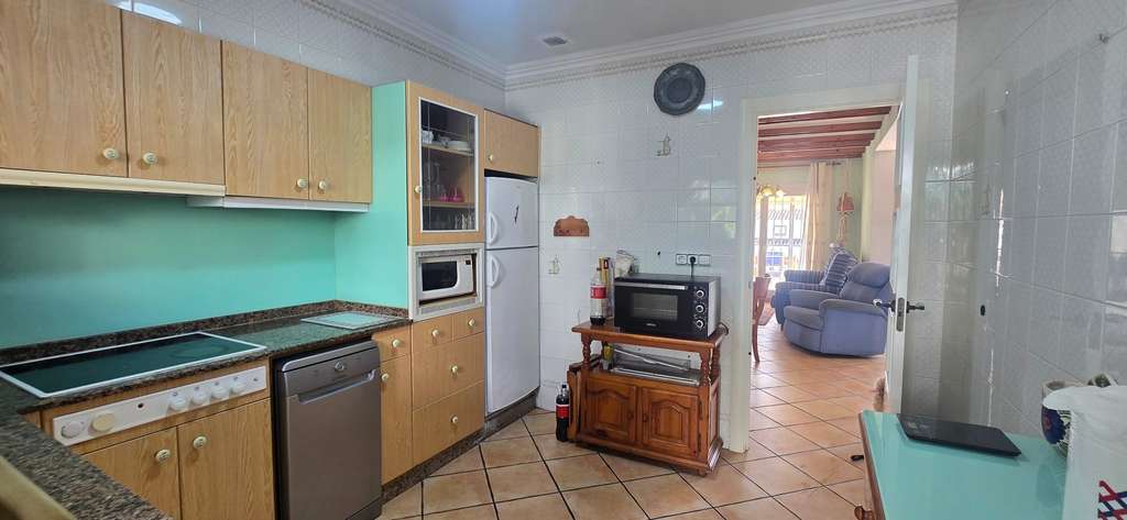 En la parte inferior de la vivienda hay un apartamento independiente con salón y cocina abierta, un dormitorio y un baño amplio. Actualmente está alquilado y genera un ingreso mensual de 600 €, con la posibilidad de mantener el alquiler si se desea o disponer del espacio para uso propio.