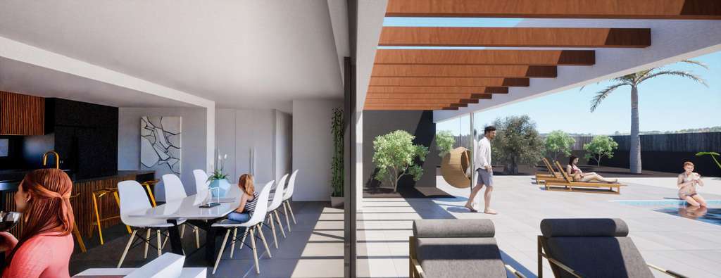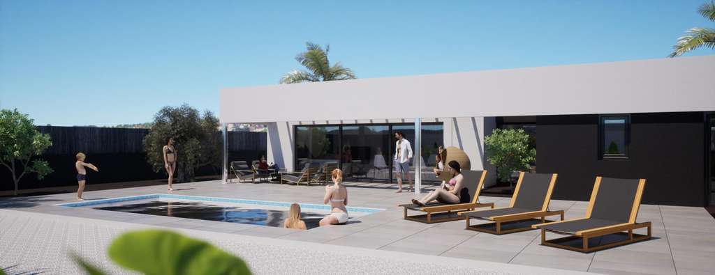 Vivienda moderna con fantástico espacio exterior y piscina.Tiene un gran salón comedor con un amplio acristalamiento hacia la terraza de la piscina. Una generosa zona apergolada de 8,5 m de largo, donde poder disfrutar del exterior con un elemento de somba. La viga de mampostería también puede soportar una hamaca o bubble chair suspendida.El salón comedor con cocina americana, y una trastero/lavadero convenientemente comunicado con la cocina y el exterior.Al entrar a la casa tenemos un hall con una gran cristal hacia un jardín exterior, que divide la parte publica de la privada. Cuenta con 3 dormitorios y dos baños (uno en suite).