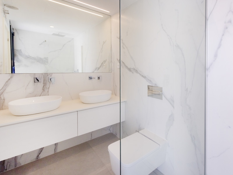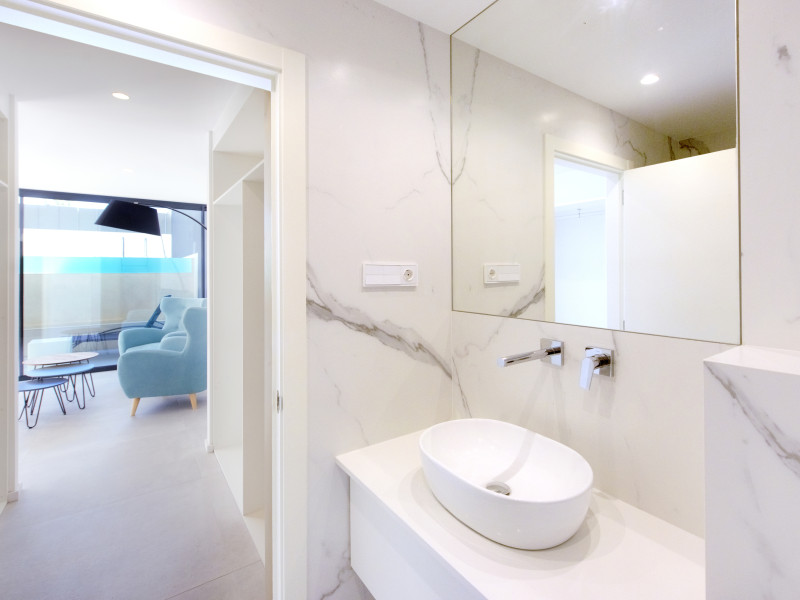 Las viviendas están disponibles con entre tres y cuatro dormitorios, cada uno con baño en suite, permitiendo adaptar las opciones a sus necesidades específicas. Además, incluyen amplias terrazas y un solárium desde donde se puede disfrutar de las impresionantes vistas al paisaje circundante. Los baños están equipados con un sistema de calefacción por suelo radiante, y el garaje tiene espacio suficiente para dos vehículos. La calidad de los materiales utilizados es inmejorable, especialmente en los salones con techos que alcanzan los cinco metros de altura. La orientación este maximiza el aprovechamiento de la luz natural.