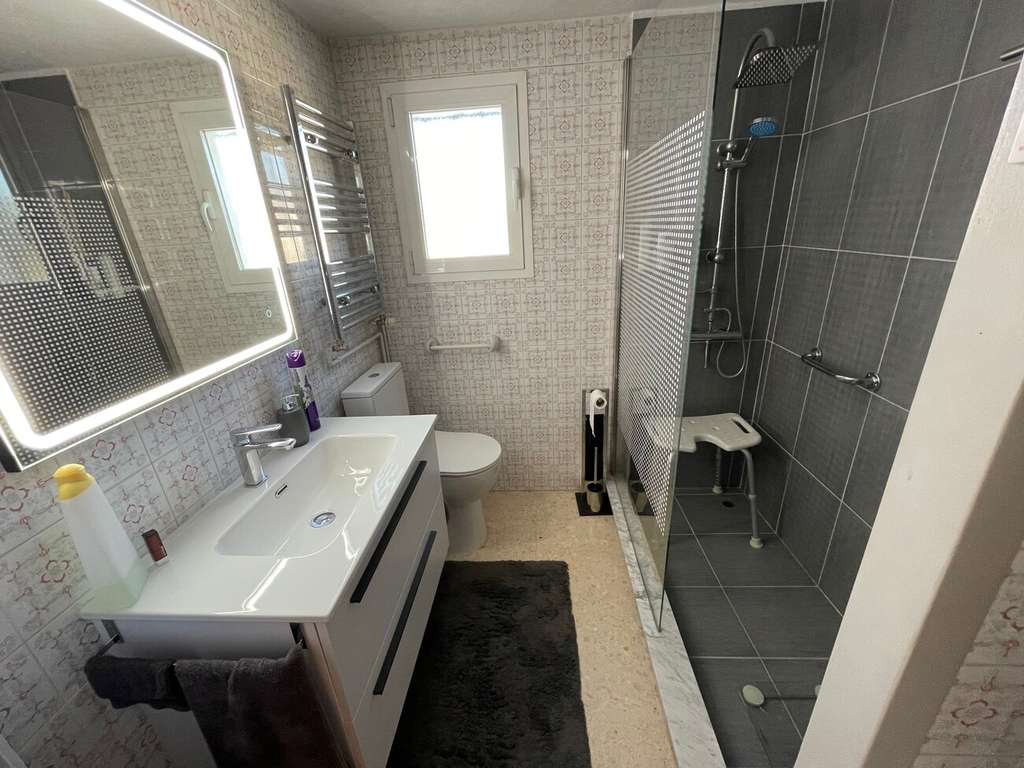 ¡OPORTUNIDAD DE INVERSIÓN!Bienvenido a esta elegante villa independiente y bien cuidada situada en la encantadora urbanización Foya Blanca, en l'Alfas del Pi, una de las urbanizaciones más tranquilas y codiciadas de l'Alfas del Pi. La propiedad ofrece una combinación perfecta de comodidad, funcionalidad y estilo de vida mediterráneo, y es ideal tanto como residencia permanente como casa de vacaciones.La vivienda está estratégicamente situada en la popular urbanización Foya Blanca, una zona tranquila y residencial. Fácilmente accesible por la AP-7 y estratégicamente situada a 10 minutos en coche de las idílicas localidades costeras de Albir y Altea.La villa cuenta con una gran terraza, parte de la cual está cerrada para su uso como espacio habitable. Le da la bienvenida un amplio salón abierto con un generoso comedor, perfecto para cenas y reuniones con familiares y amigos. La práctica cocina está equipada con mucho espacio de almacenamiento y encimeras, ideal para los amantes de la cocina. A través de un pasillo se accede al cuarto de baño completamente renovado (con ducha) y a dos amplios dormitorios.Debajo de la casa se puede entrar con el coche en el amplio garaje con taller y trasteros.El precioso jardín rodea la casa y ofrece varias zonas de descanso acogedoras, un jacuzzi y una amplia cocina exterior.El precio de venta de esta vivienda se estima en 350 000 €. Actualmente, la vivienda se vende con 4 años de usufructo, por lo que se ofrece una compensación de 50 000 €. ¡Una oportunidad de inversión ideal!Esta es una propiedad con mucho potencial que atrae tanto a residentes permanentes como a turistas, y la vendemos en exclusiva.¡Póngase en contacto con nosotros hoy mismo para aprovechar esta villa única y su atractiva ubicación!