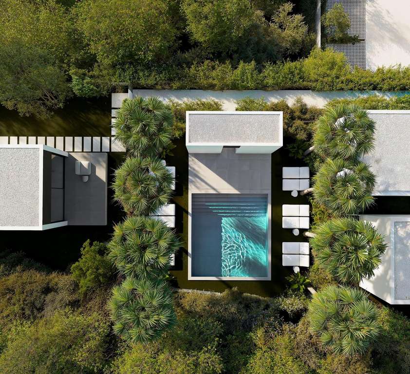 La urbanización está distribuida en dos niveles para adaptarse de forma natural al terreno. El nivel superior está dedicado íntegramente a las viviendas y a las zonas comunes ajardinadas, creando un entorno peatonal seguro y tranquilo. El nivel inferior alberga plazas de aparcamiento, trasteros y zonas técnicas, discretamente integrados en el diseño. Esta separación garantiza la privacidad, la tranquilidad y una experiencia de vida sin coches dentro de la zona residencial.