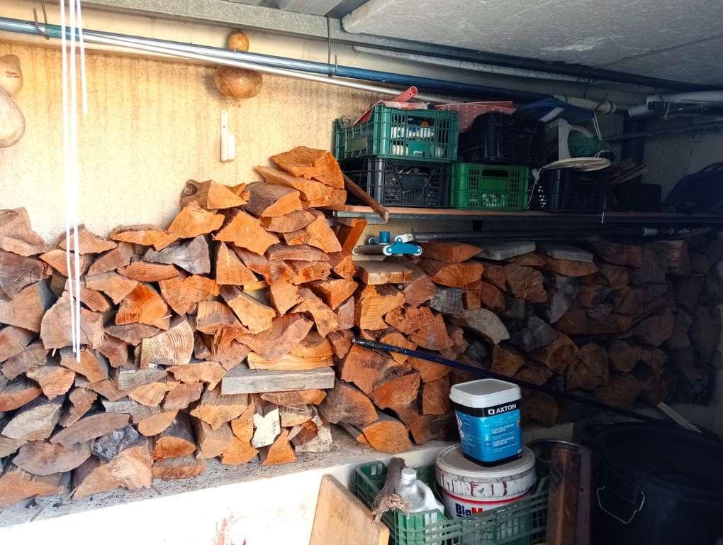 Trastero, lavadero y zona de almacenamiento de leña, que ofrecen soluciones de almacenamiento y practicidad.