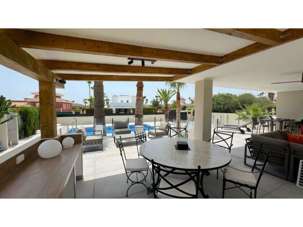 ¿Buscas la casa de tus sueños en España? Luego echa un vistazo a esta fantástica villa en Alfas del Pi, que está a solo 10 minutos de la playa y a 15 minutos de Benidorm. Esta villa tiene todo lo que podrías desear en cuanto a confort, diseño y calidad.La villa fue completamente renovada en 2023 y tiene un aspecto moderno y elegante. La vivienda tiene una superficie habitable de 350 metros cuadrados, distribuida en dos plantas y el sótano.En la primera planta encontrarás un amplio salón combinado con un comedor, que tiene grandes ventanales que dejan entrar mucha luz. Hay luces LED integradas en el techo para las noches atmosféricas. Aquí también hay una cocina abierta con electrodomésticos integrados y una gran isla. Además, hay un dormitorio/oficina, un baño independiente y un gran salón que incluye escaleras desde el sótano hasta la segunda planta. Hay acceso directo desde el garaje del sótano a la casa.En la segunda planta hay tres dormitorios, dos con baño privado y armarios. El dormitorio principal también cuenta con un vestidor y una terraza privada con vistas al jardín y la piscina. En la terraza hay un jacuzzi con vistas al skyline de Benidorm.La zona exterior es tan impresionante como la interior. Aquí tienes una gran parcela de 1250 metros cuadrados, con un jardín bien cuidado, una terraza con comedor, una pérgola con zona de estar y una cocina exterior con barbacoa y fregadero con agua caliente y fría. La característica más llamativa es la hermosa piscina, que tiene una longitud de 11 metros y una anchura de 5 metros. La piscina tiene una iluminación que crea un ambiente mágico por la noche. También hay una zona de juegos con una pista de bolos que cuenta con iluminación LED y un green de golf para golf.La villa cuenta con muchas otras características, como calefacción por suelo radiante, aire acondicionado, agua filtrada que permite beber agua del grifo, un sistema de alarma, un garaje, un trastero, persianas eléctricas, doble acristalamiento, etc. Se ha instalado un sistema de celdas solares en el tejado con un gran paquete de baterías para que seas autosuficiente en electricidad. La villa también está completamente amueblada y lista para mudarse.Esta villa es una oportunidad única para quienes buscan una casa lujosa y moderna en una zona tranquila y segura, pero al mismo tiempo cerca de todas las instalaciones y atracciones. El precio es de 1.195.000€. Si estás interesado, puedes contactar con el agente para más información o para concertar una visita. No esperes demasiado, ya que esta villa no estará en el mercado mucho tiempo.