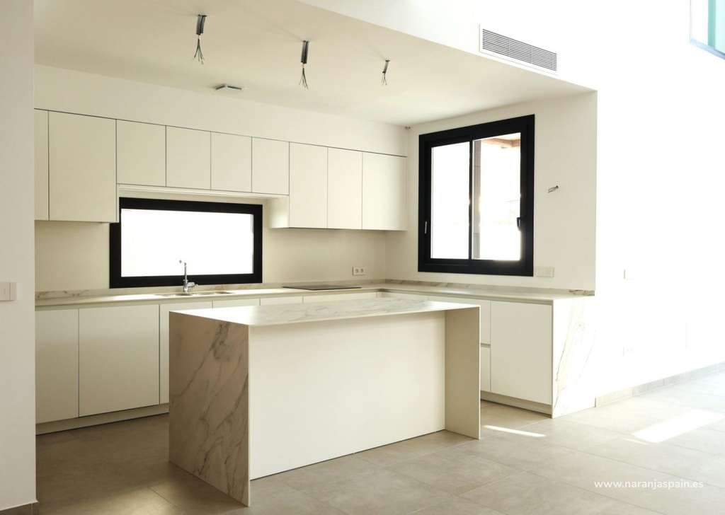 Interiores espaciosos y confort modernoLas villas ofrecen cuatro amplios dormitorios, tres baños y un aseo para invitados distribuidos en dos plantas. El salón-comedor diáfano cuenta con techos de doble altura que potencian la luz natural y crean un ambiente aireado y acogedor. Otros aspectos destacados son un jardín interior con claraboya, una bodega y una escalera flotante que añade un toque de elegancia arquitectónica. Las cocinas están completamente equipadas con armarios altos y bajos y electrodomésticos de alta calidad, mientras que las persianas eléctricas de los dormitorios proporcionan comodidad y confort.