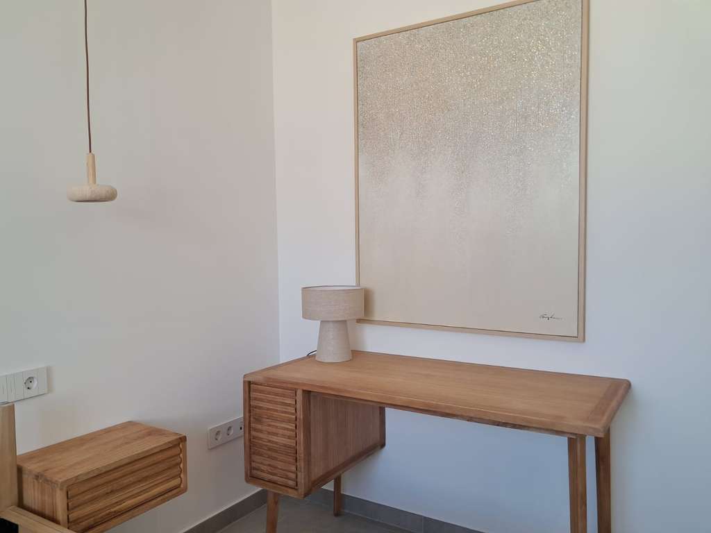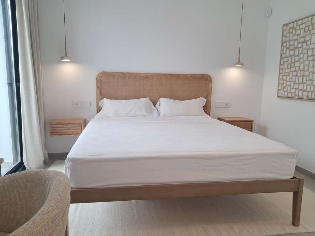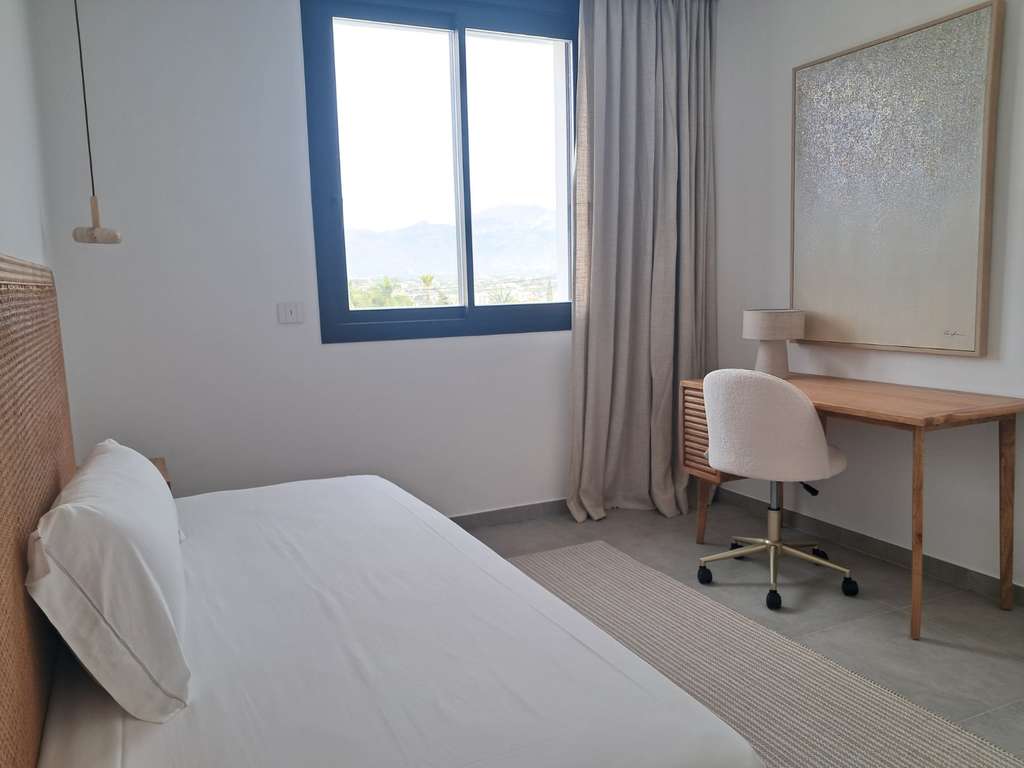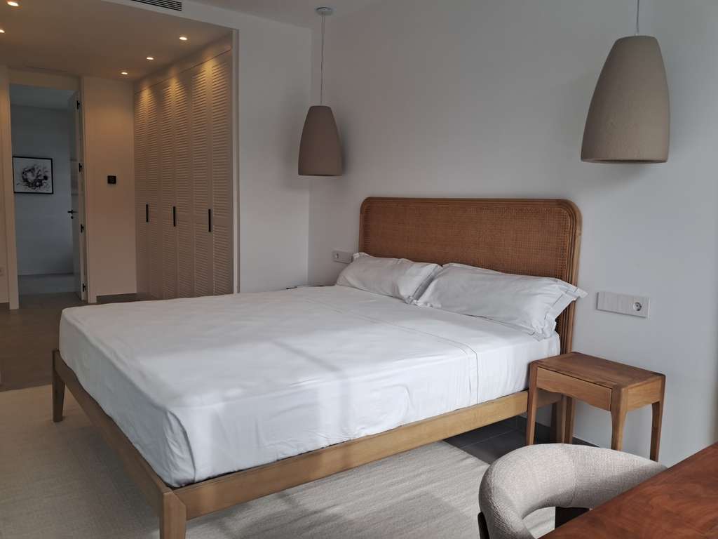 Las viviendas cuentan con 4 dormitorios, dos de ellos master suites, ubicadas respectivamente en la planta baja y en la planta superior. La suite principal de la planta baja dispone de jardín privado y ducha interior y exterior, mientras que la suite de la planta alta incluye vestidor y baño integrado. Todos los dormitorios cuentan con armarios empotrados.